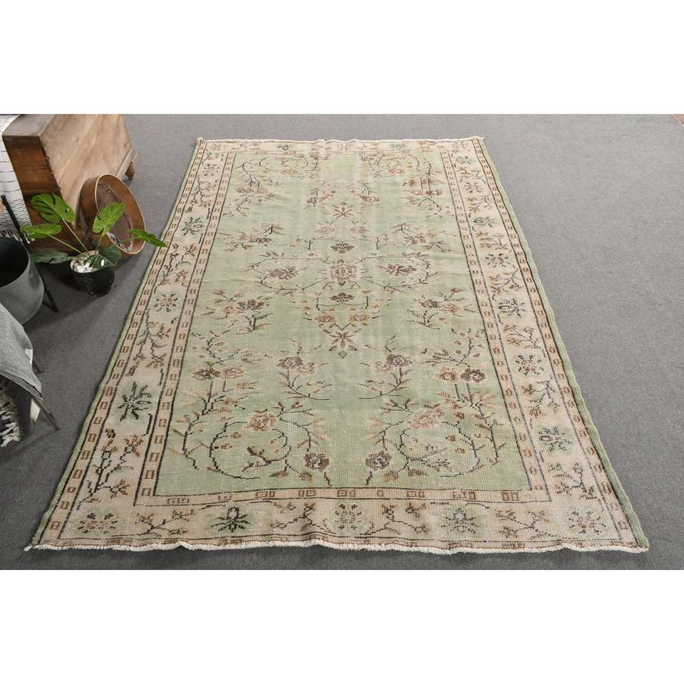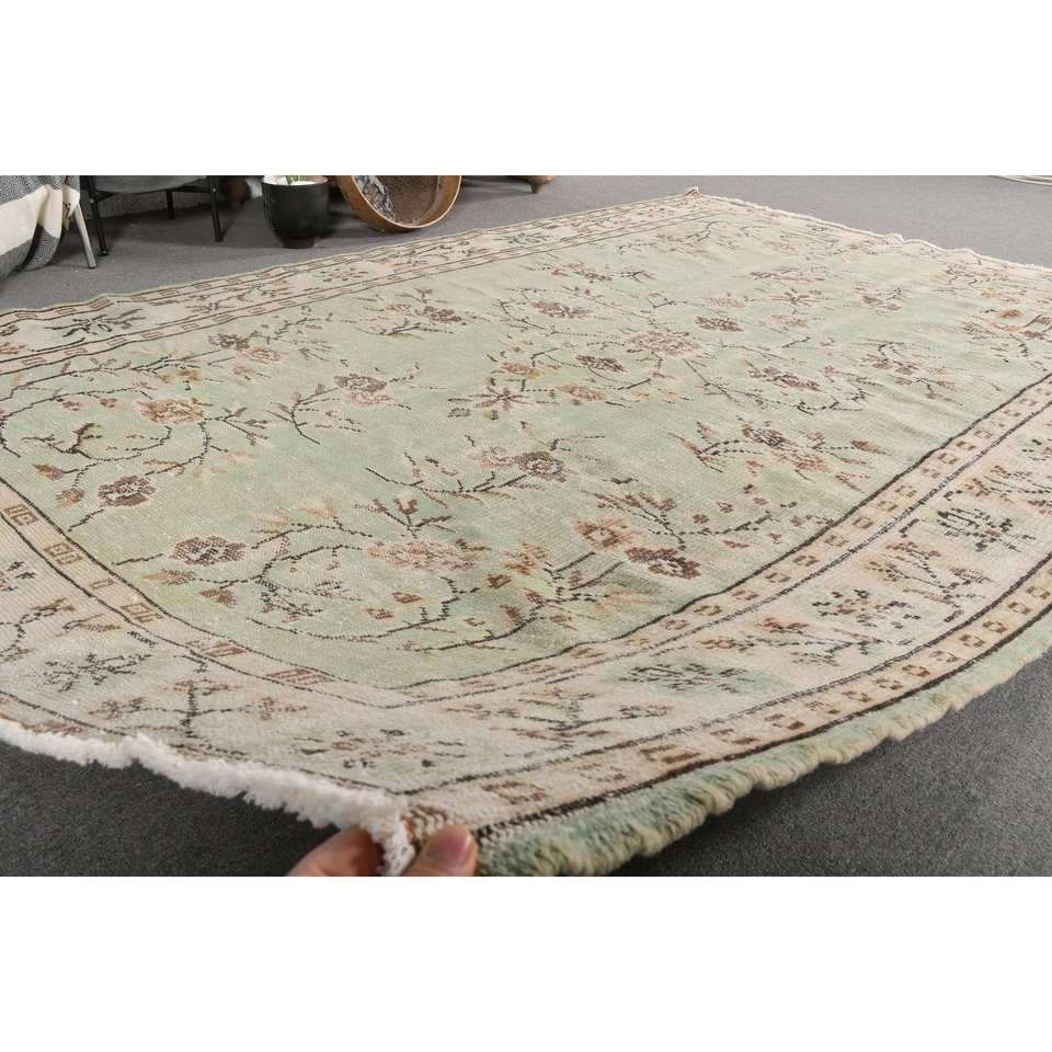 พรมตุรกีโบราณ6.4 x 9.2ft สีเขียวเบจสานแบบเรียบขนสัตว์เย็บปะติดปะต่อกันสำหรับตกแต่งห้องนั่งเล่นห้องโถงใช้ยางรอง
