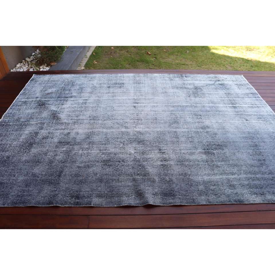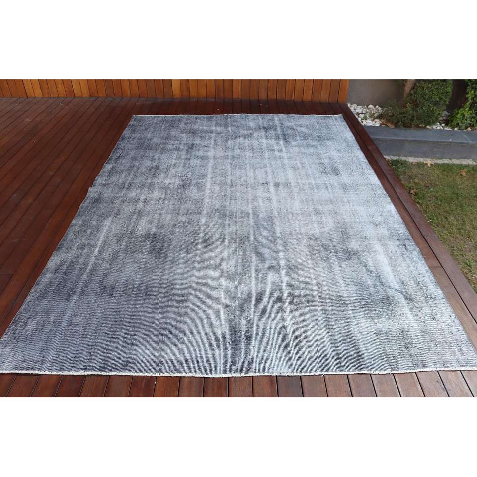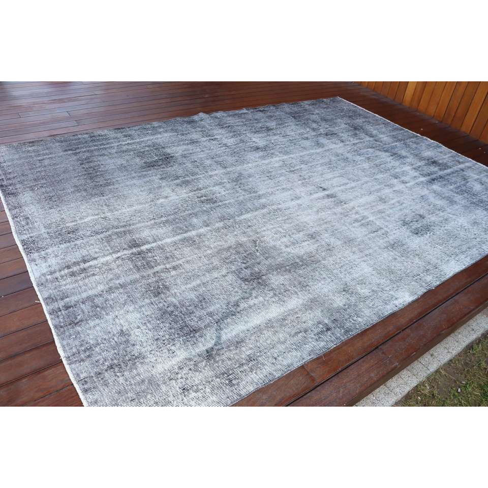พรมตุรกีลายปะติดแบบวินเทจ ขนาด 6.6x9.3 ฟุต (202x284 ซม.) ทำจากขนสัตว์สีเทาเป็นมิตรกับสิ่งแวดล้อม พร้อมแผ่นรองหลังทำจากยางลาเท็กซ์