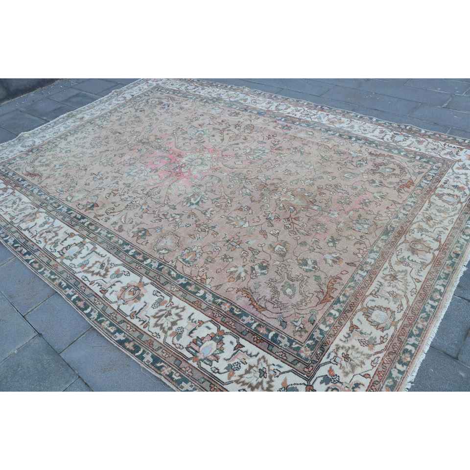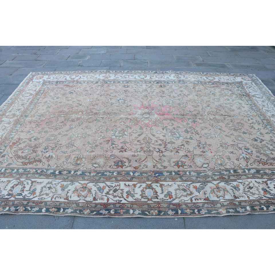 พรมตุรกีโบราณ ขนาด 7.8x11.1 ฟุต (239x338 ซม.) พรมขนสัตว์สีขาว