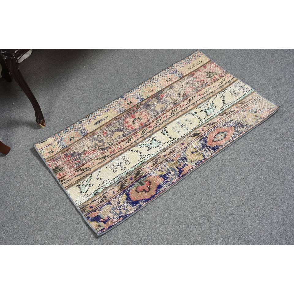 พรมตุรกีวินเทจ1.8x3.1ft สีเบจคลาสสิกพื้นที่ขนาดใหญ่ผ้าขนสัตว์ด้านหลังรูปแบบนามธรรมสี่เหลี่ยมลายห้องโถงพรมสำหรับห้อง