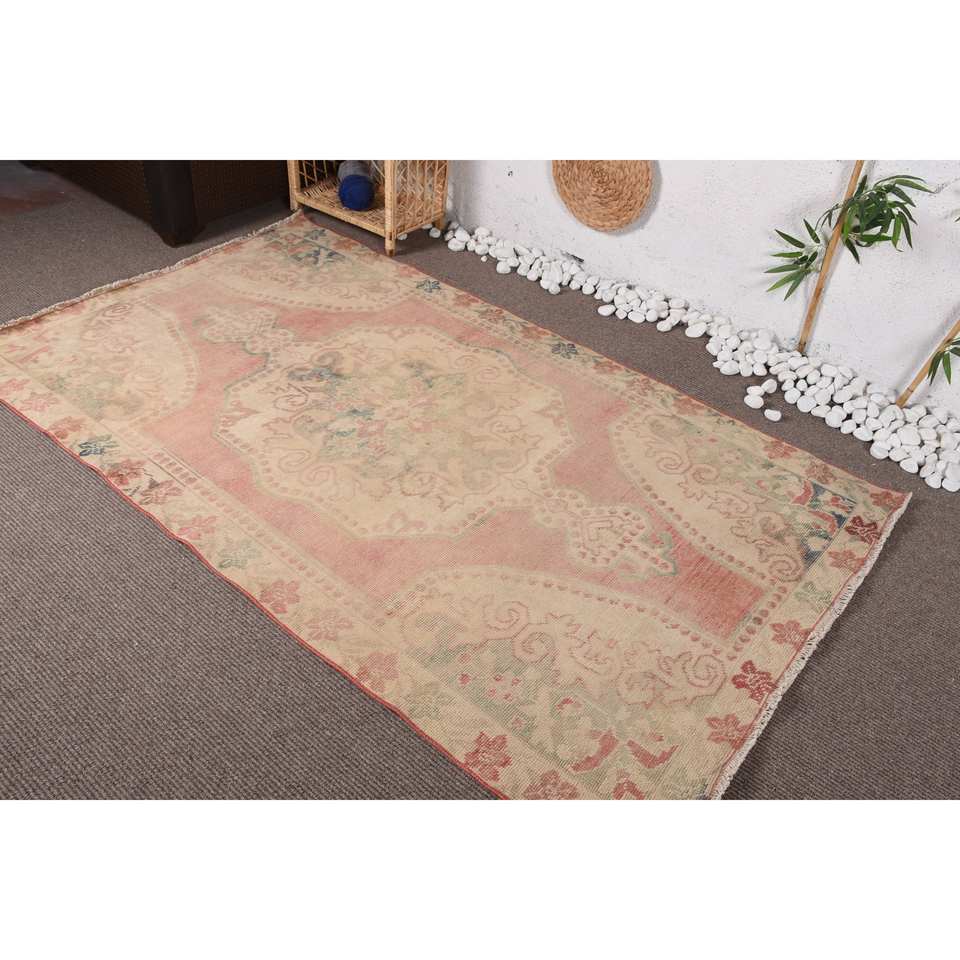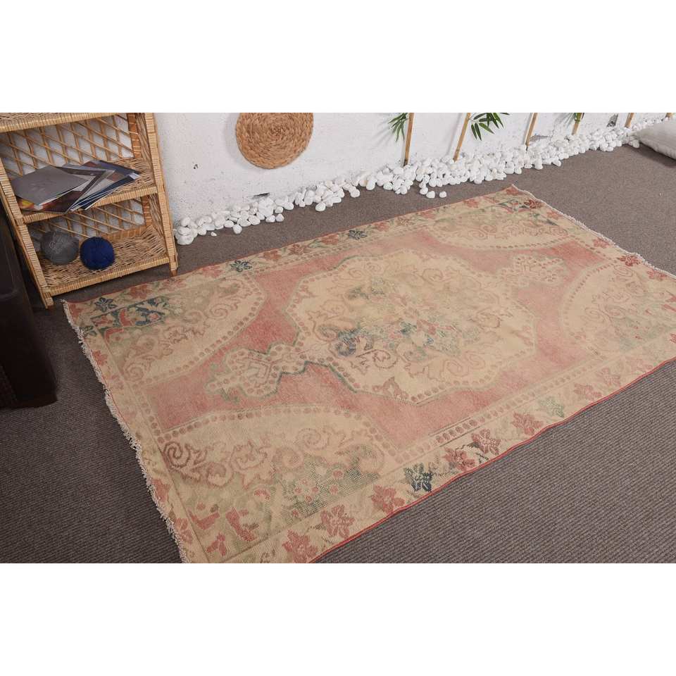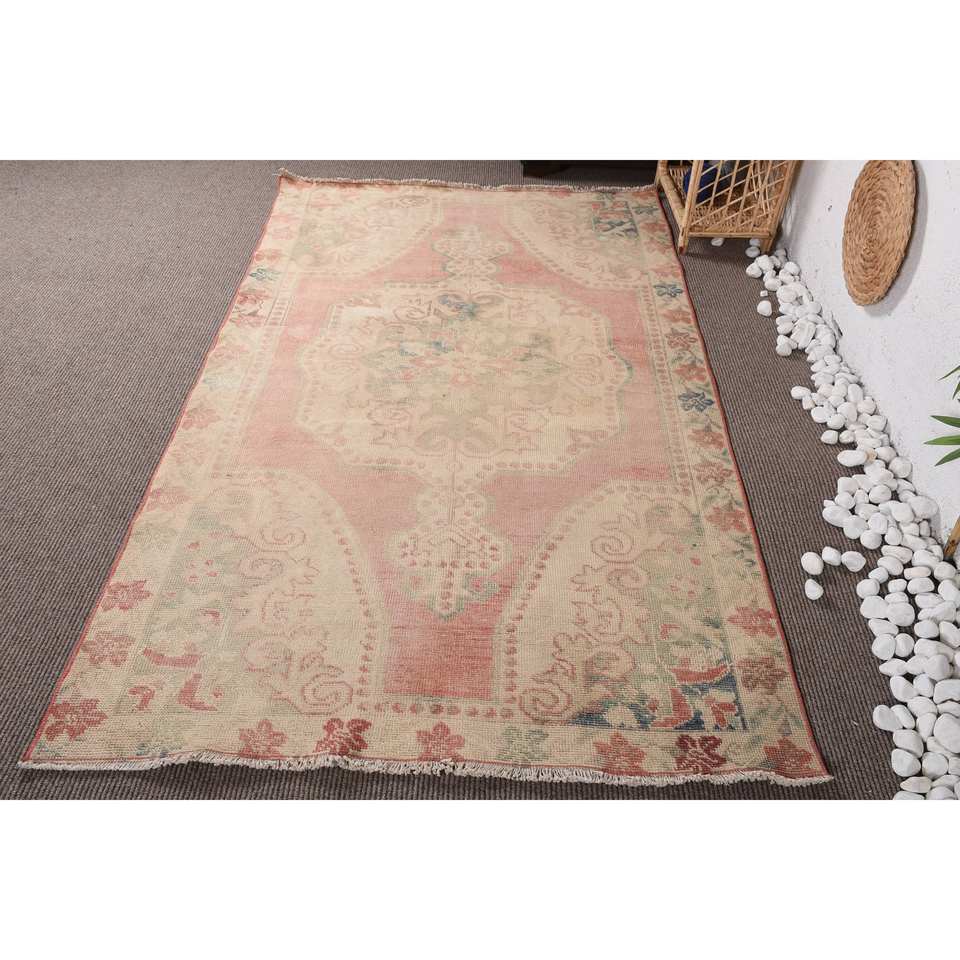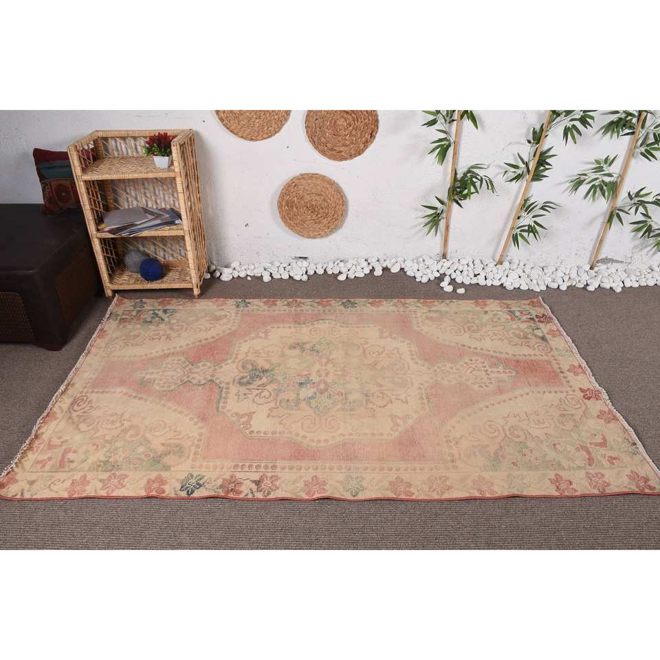 พรมขนแกะสีเบจ4.2x7.2ft ตุรกีแบบวินเทจผ้าปะติดขนาดใหญ่ทำด้วยมือมีแผ่นยางรองหลังสำหรับตกแต่งห้องโถงหรือห้อง
