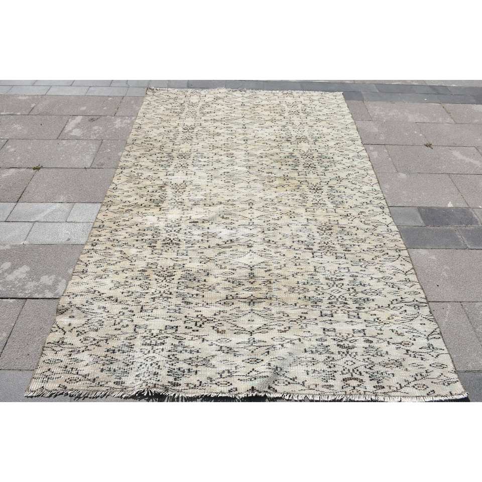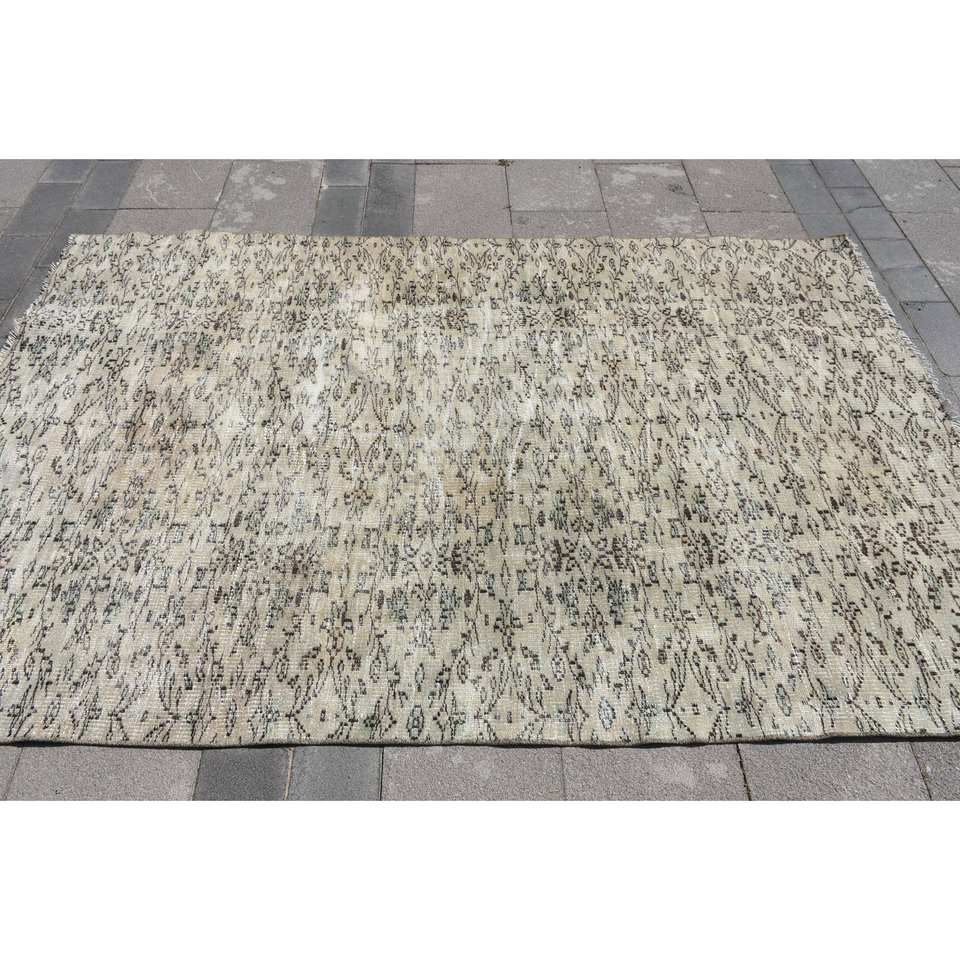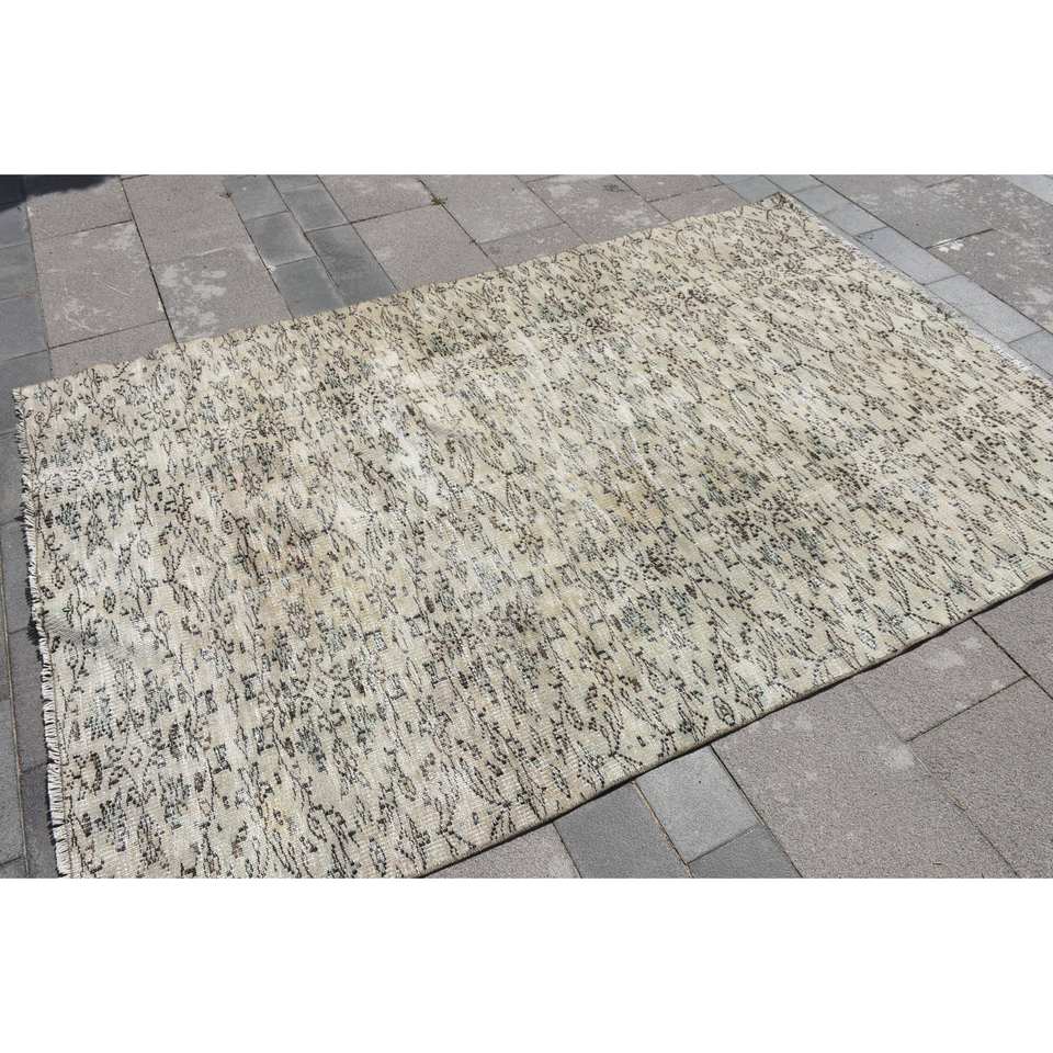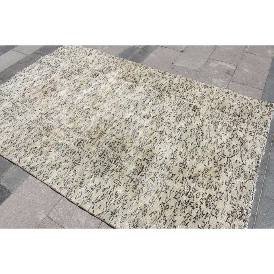 พรม4.9x7.5ft สไตล์ตุรกีวินเทจขนสัตว์สีเบจสำหรับตกแต่งบ้านพรมห้องนั่งเล่นลายเย็บปะติด