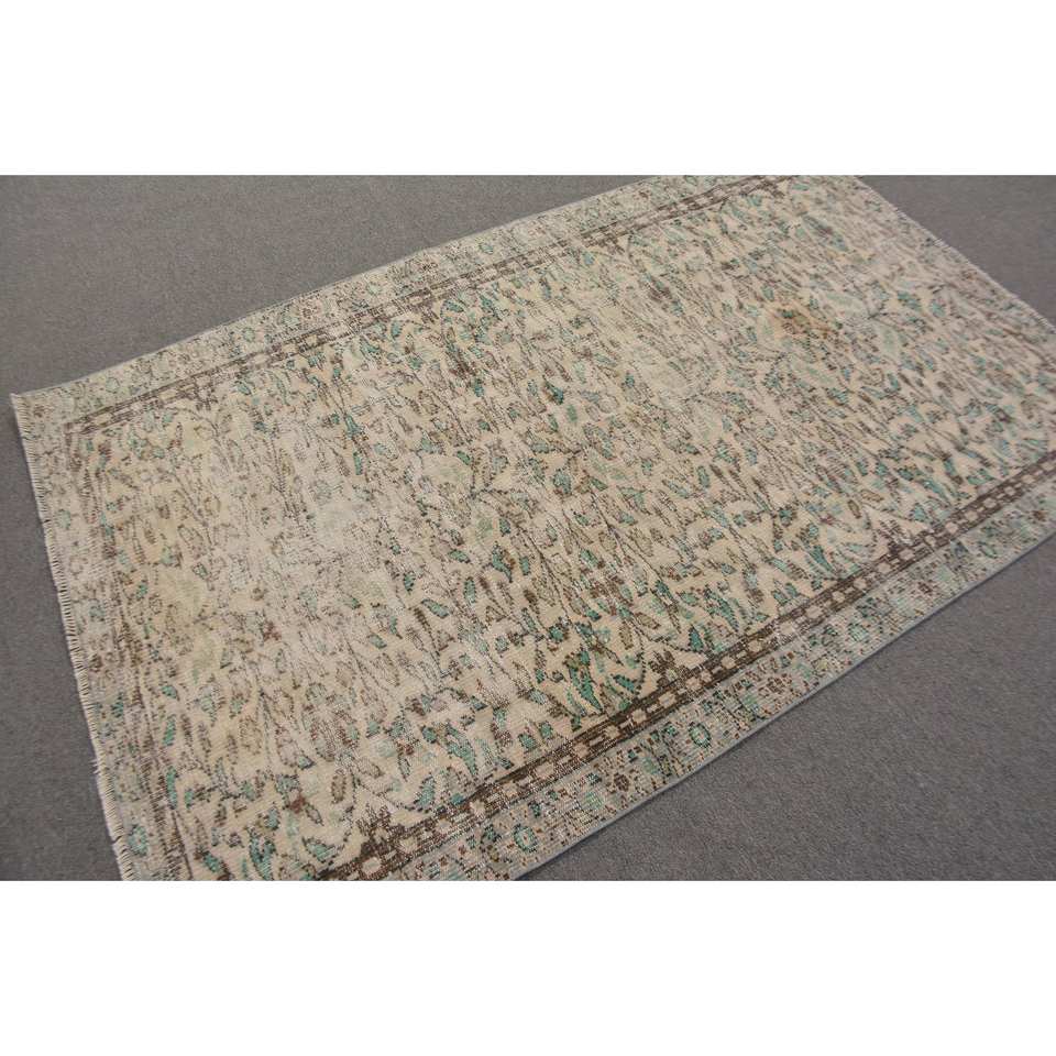 พรมขนแกะสไตล์ตุรกีโบราณลายเบจฟ้า4.6 x 7.1ft ต่อผ้าวูลสานเรียบสำหรับวัยรุ่นตกแต่งห้องนั่งเล่นน้ำยาง
