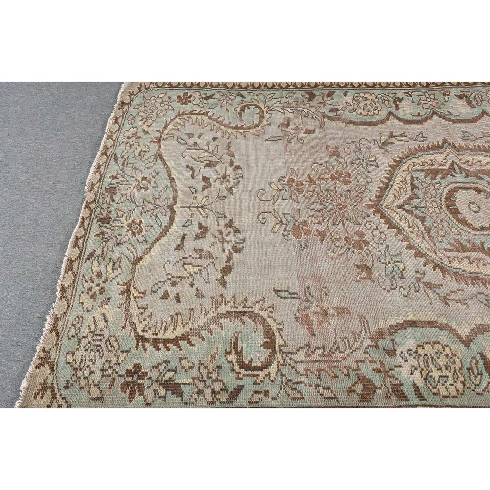 พรมตุรกีวินเทจสีเบจสีฟ้า5.3x8.3ฟุตคลาสสิกขนาดใหญ่ผ้าขนสัตว์ผ้าขนสัตว์สี่เหลี่ยมเย็บปะติดปะต่อกันสำหรับห้องโถงห้องพรม