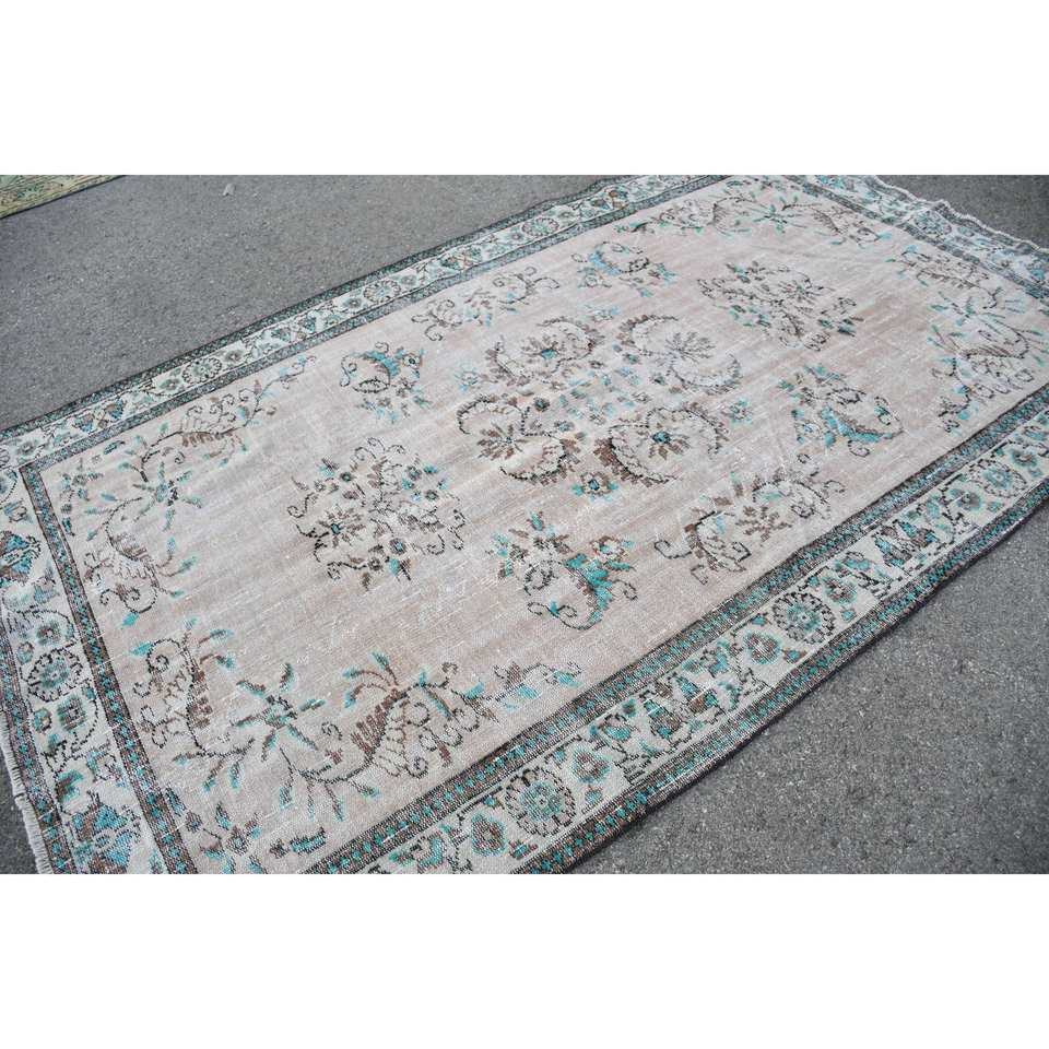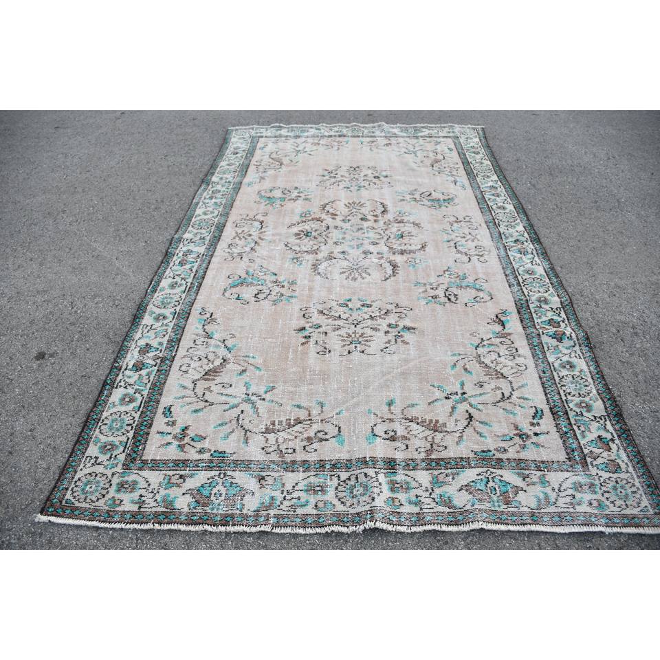 พรมตุรกีวินเทจผ้าทอสีเบจสีฟ้า5.8x9.6ฟุตสำหรับตกแต่งห้องนั่งเล่นวัสดุขนสัตว์พร้อมยางรองกว้าง4เมตร