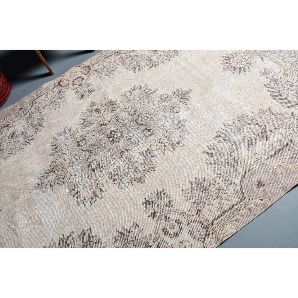 พรมตุรกีวินเทจ สีเบจ-น้ำตาล ขนาด 5.5 x 9.2 ฟุต ทำจากขนสัตว์ เป็นมิตรต่อสิ่งแวดล้อม ทอแบบเรียบ ลายปะติดปะต่อ เหมาะสำหรับตกแต่งห้องนั่งเล่นและทางเดิน