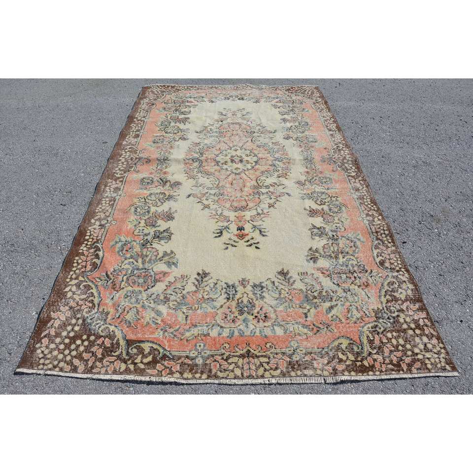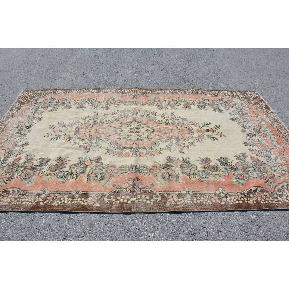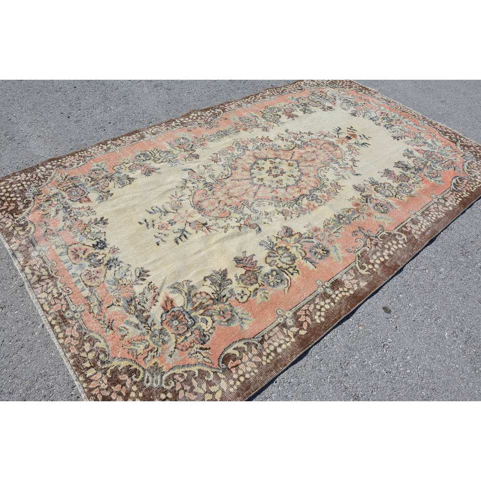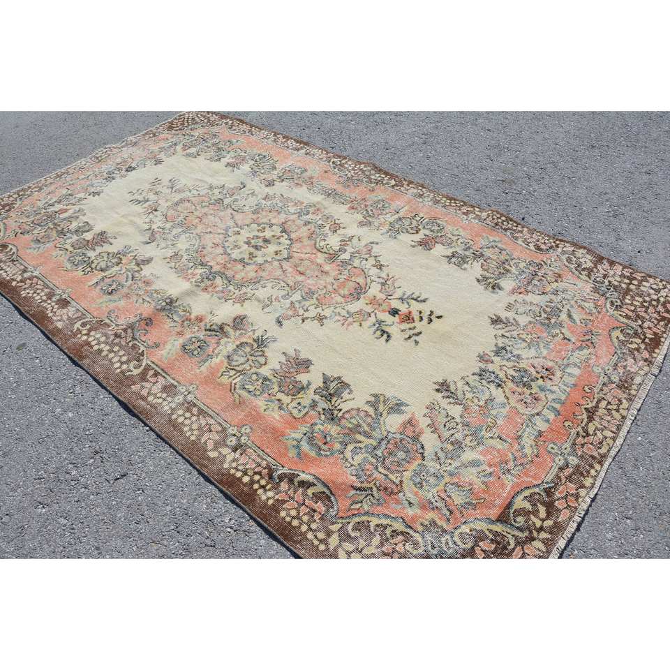 พรมขนแกะสีเบจสีน้ำตาลขนาด5.4X9.4ฟุตแนววินเทจผ้าทอแบบแบนมีลวดลายปะต่อสำหรับตกแต่งห้องนั่งเล่นโถงทางเดิน