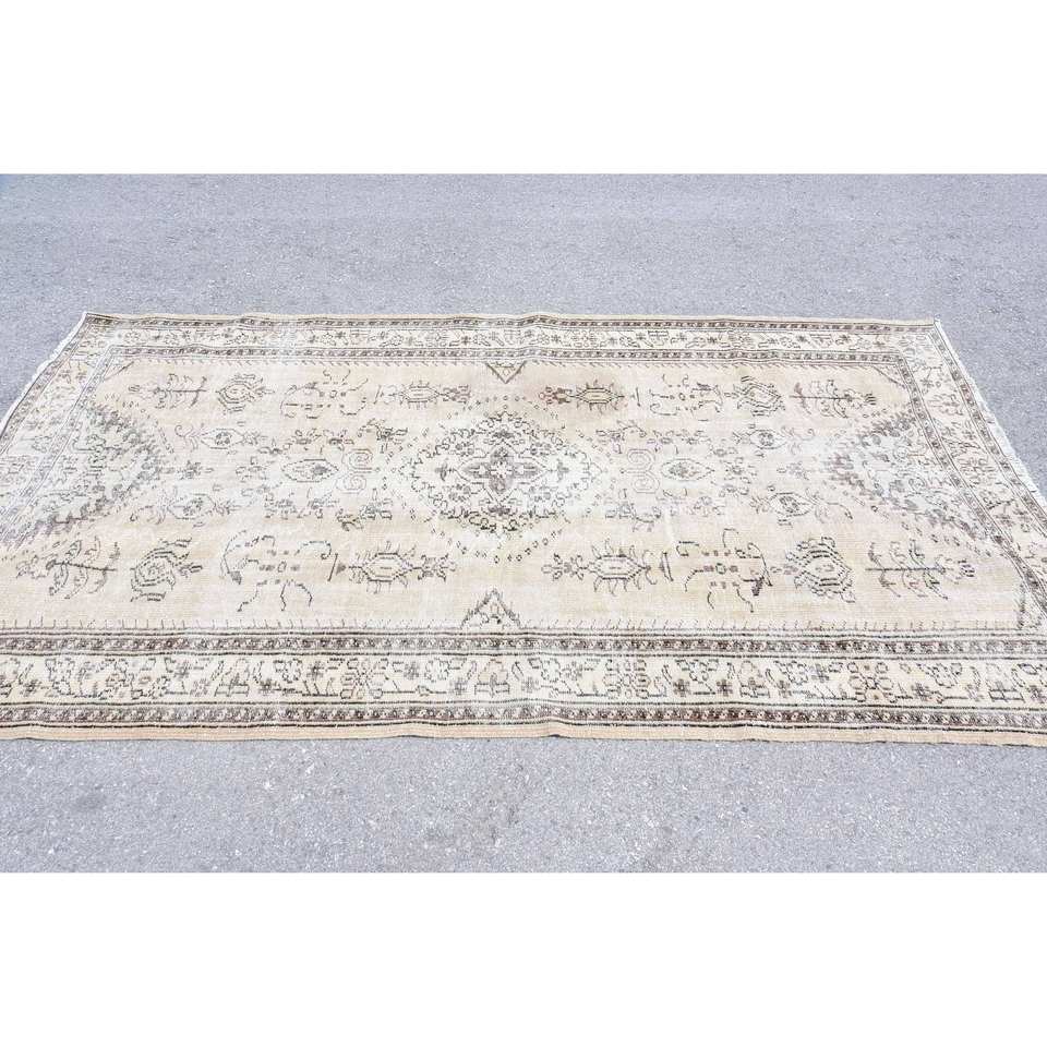 Vintage Turkish Rug Beige-Brown 5.6 X 8.9 ft Wool Flat Weave with Patchwork Pattern for Living Room Decorations Hallway Use