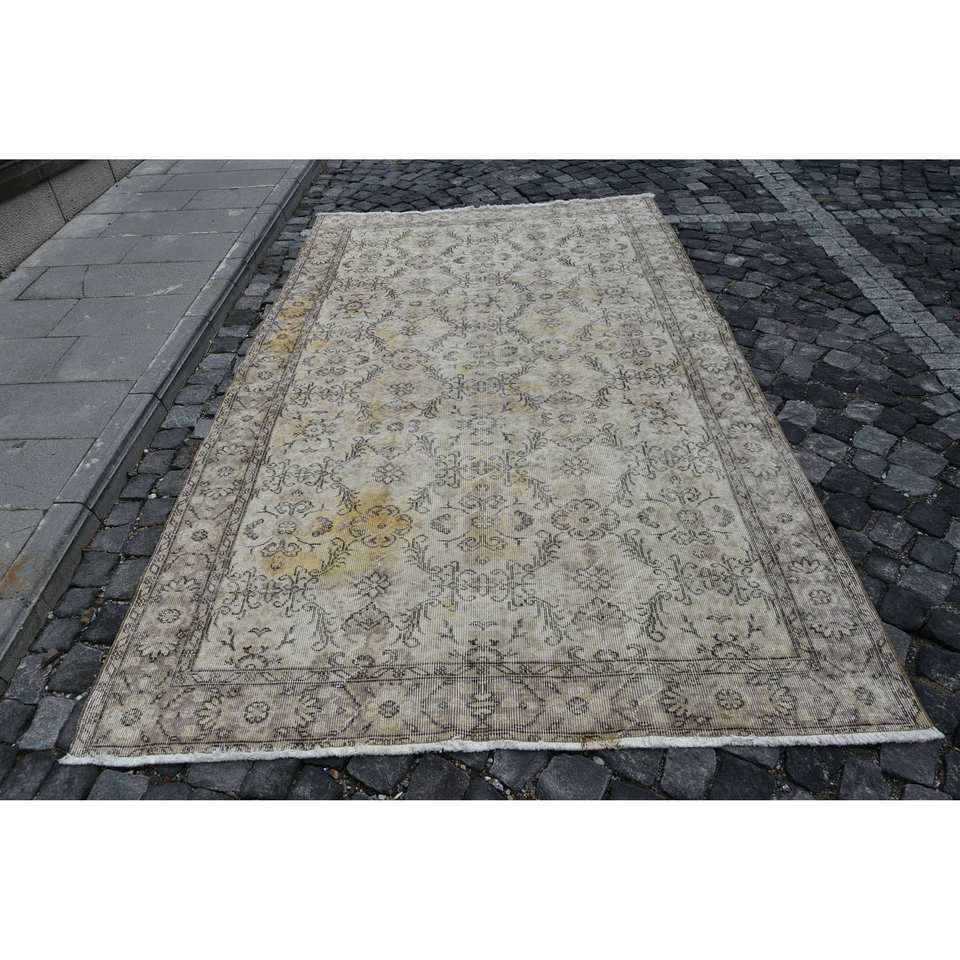 พรมตุรกีวินเทจขน9.2ft เบจสีน้ำตาลขนาด5.7 X ถักทอแบบแบนมีลวดลายปะติดสำหรับตกแต่งห้องนั่งเล่นหรือใช้ในห้องโถง