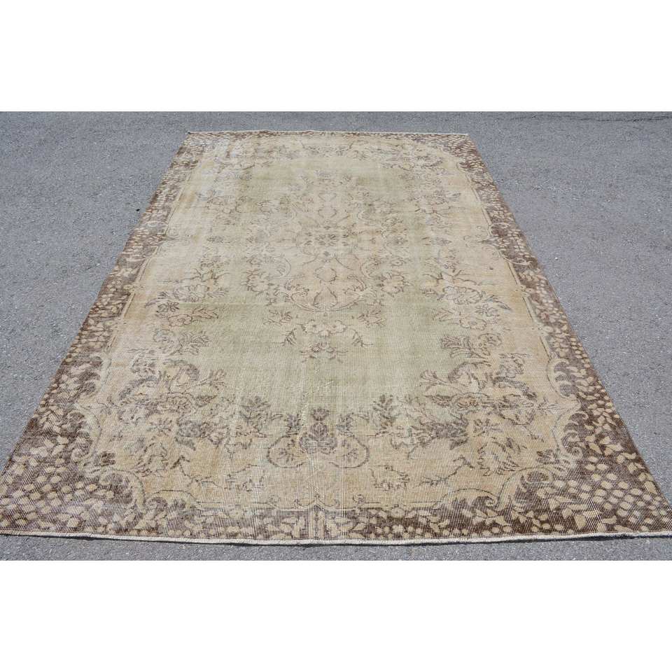 พรมตุรกีวินเทจขนแกะสีเบจสีน้ำตาลขนาด6.3x9.5ฟุตถักทอแบบแบนพร้อมลวดลายเย็บปะติดปะต่อกันสำหรับห้องนั่งเล่นตกแต่งห้องโถง