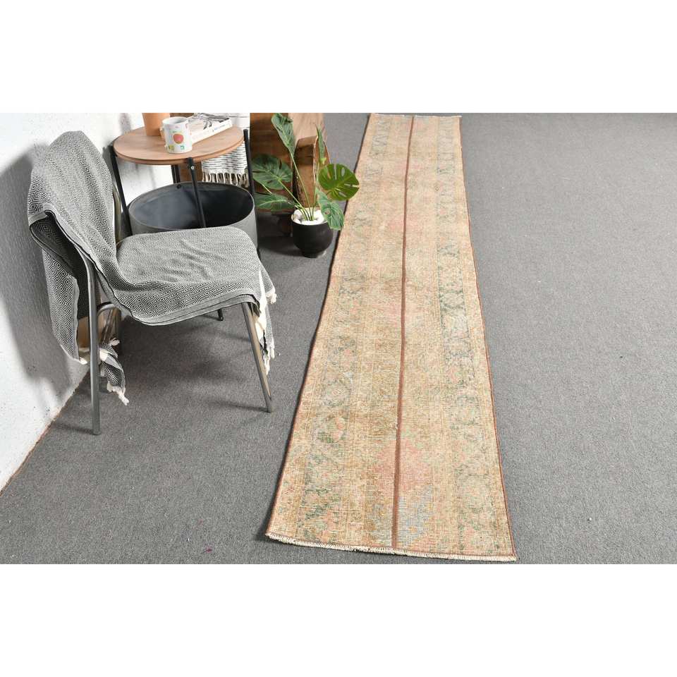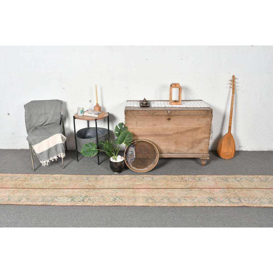 พรมตุรกีโบราณสีเบจสีเขียว1.9x11.3ft แบนสานสี่เหลี่ยมผืนผ้าสำหรับห้องนั่งเล่นหรือตกแต่งห้องโถง