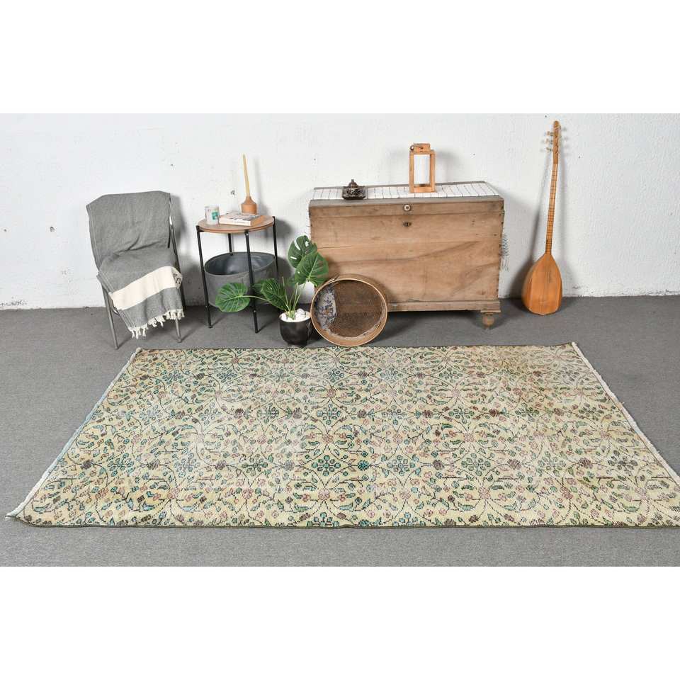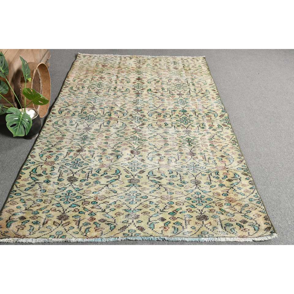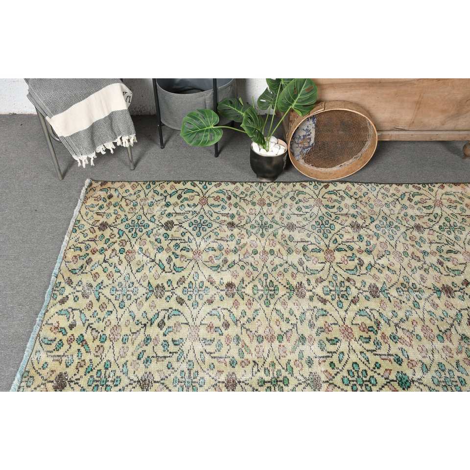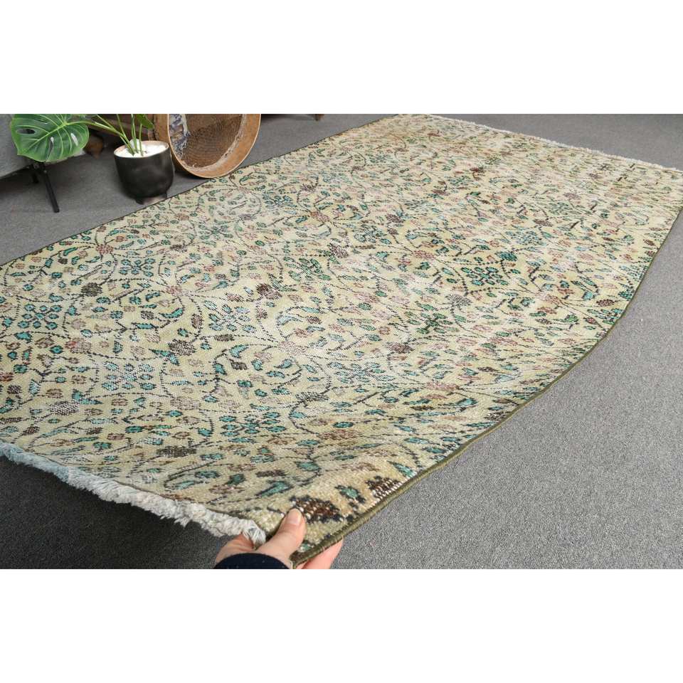 พรมสไตล์ตุรกีโบราณลายเบจสีเขียวขนาด4.6 x 7.6ft ผ้าขนสัตว์ผืนใหญ่งานเย็บปะติดดีไซน์เป็นรูปสี่เหลี่ยมผืนผ้าสำหรับตกแต่งห้อง