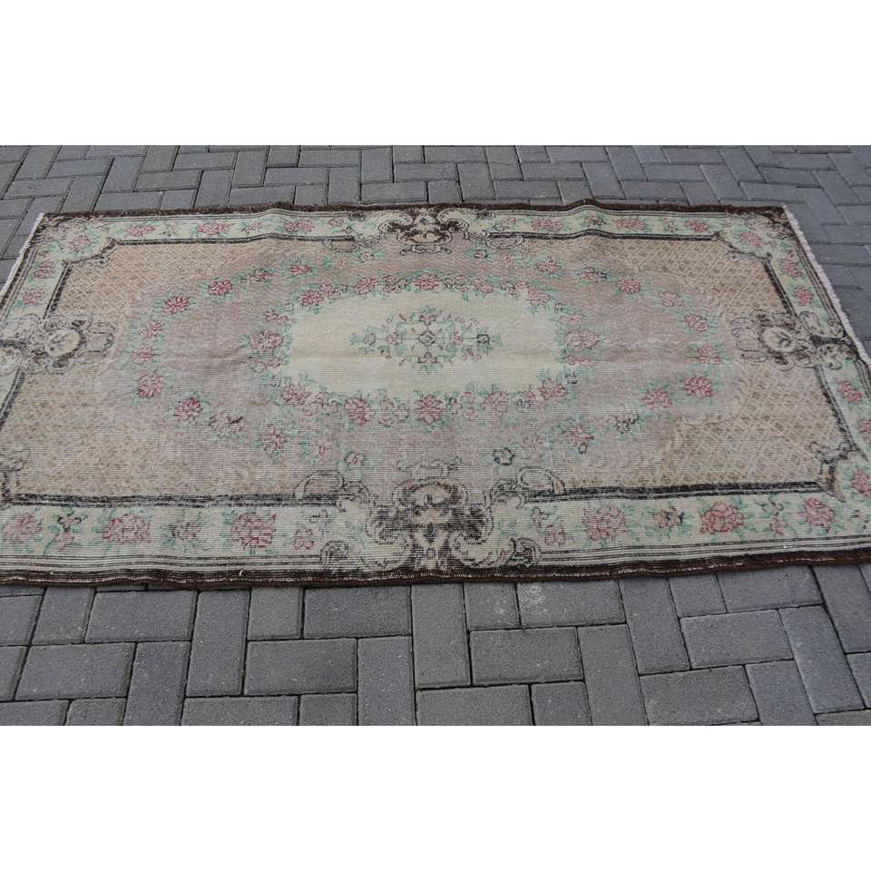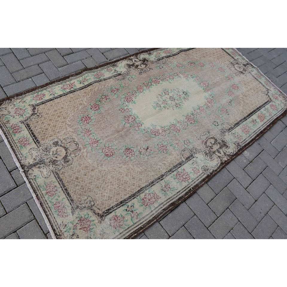 พรมตุรกีวินเทจลายดอกไม้สีเขียวเบจผ้าขนแกะทรงสี่เหลี่ยมผืนผ้าผืนใหญ่แบบคลาสสิกขนาด3,9x7,2ฟุต