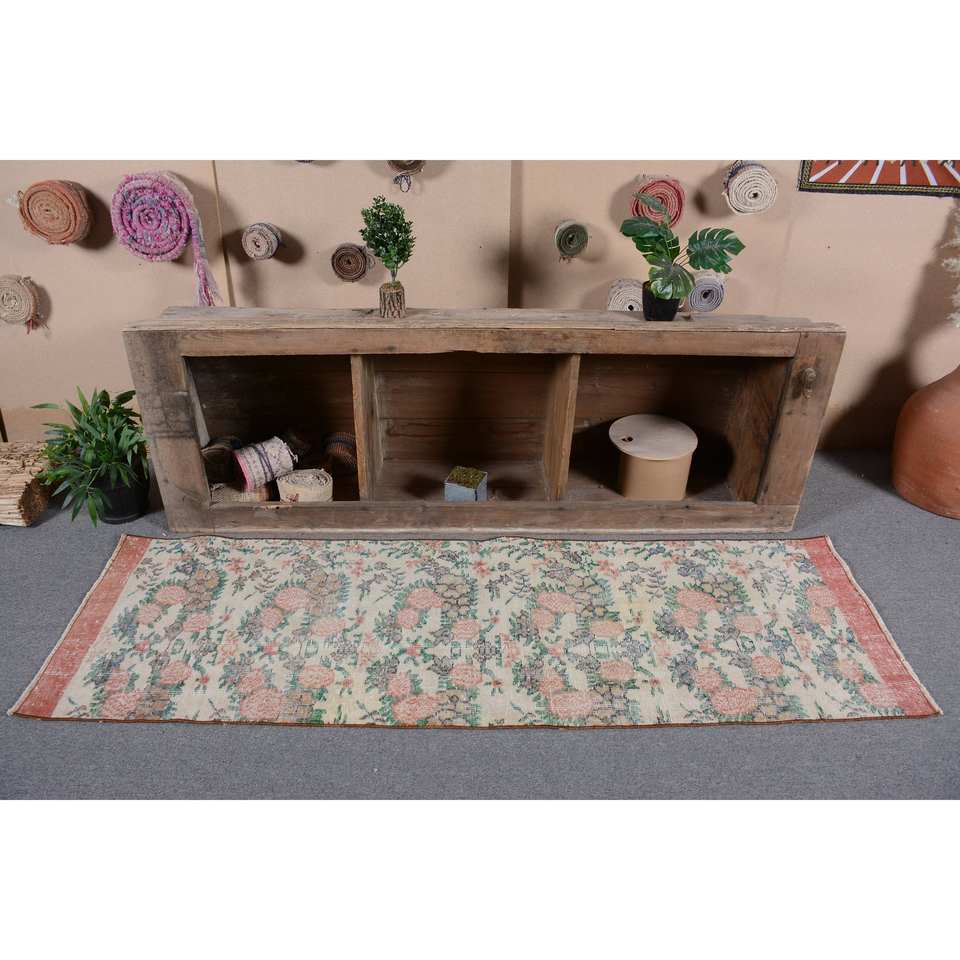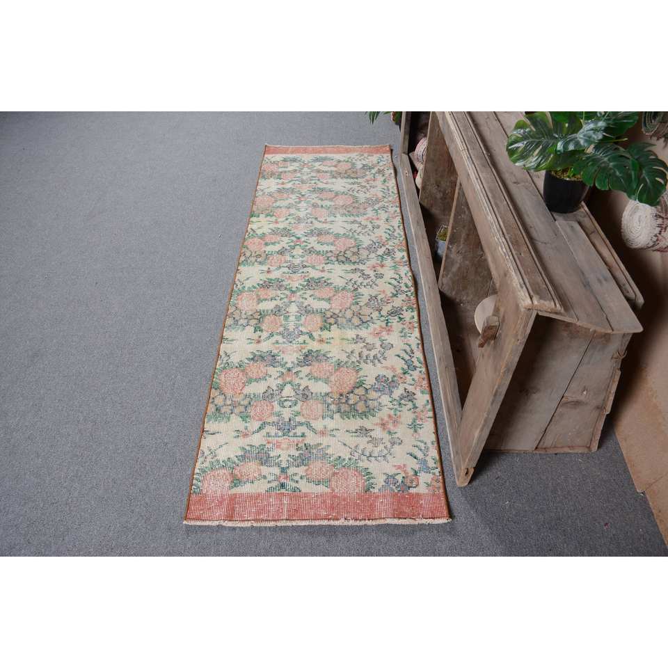 พรมสไตล์ตุรกีโบราณลายเบจสีเขียวงานปะผ้าขนแกะ2.1x6.7ft สี่เหลี่ยมขนาดใหญ่สำหรับตกแต่งห้อง