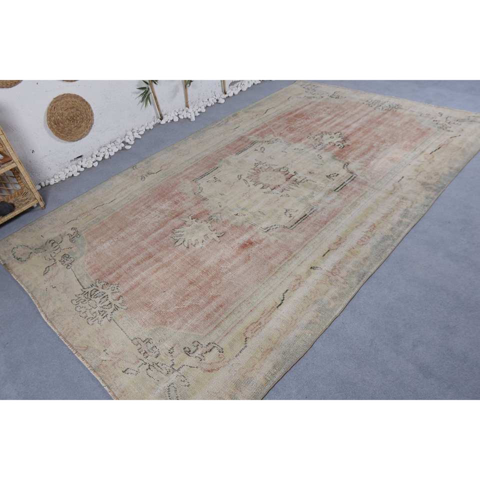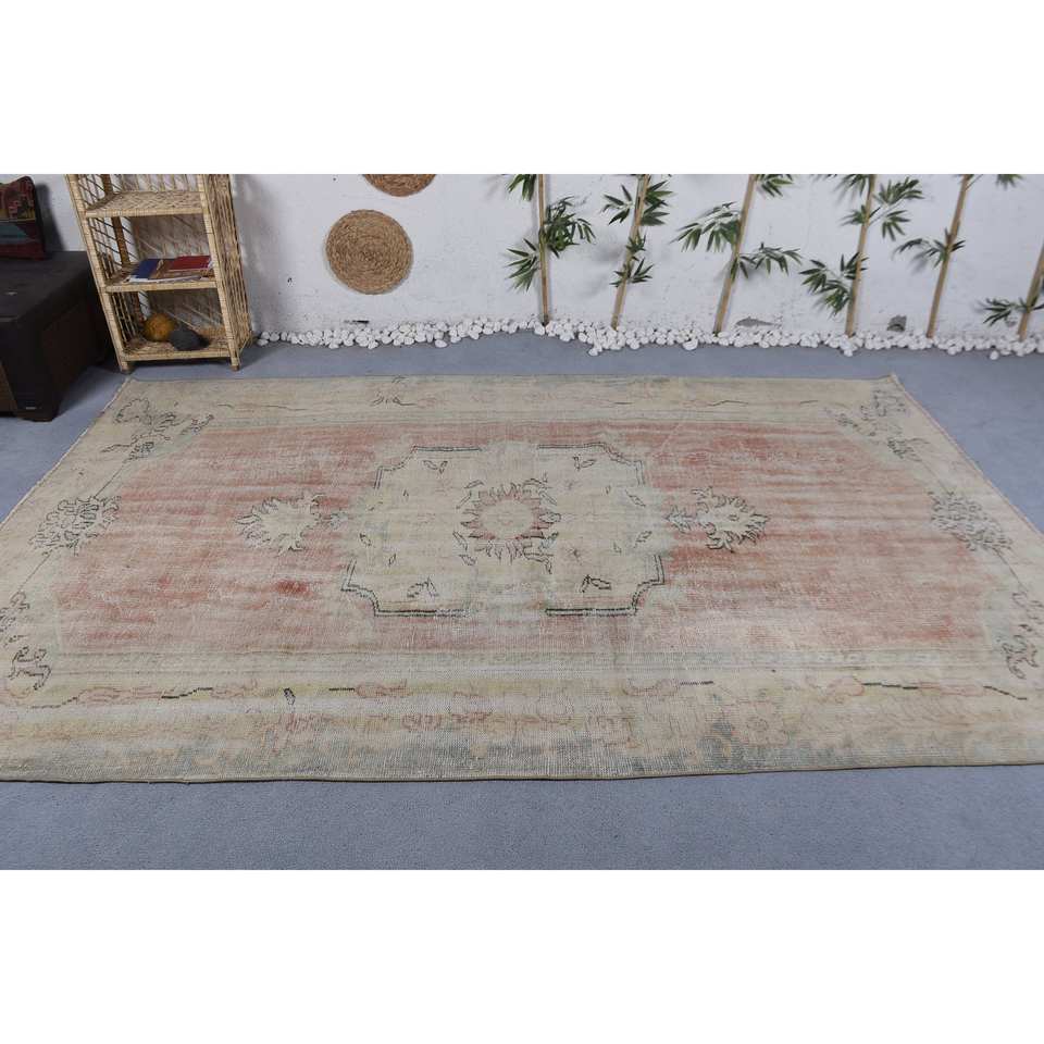 พรมแนววินเทจสไตล์ตุรกีสีเบจสีส้ม6.6 x วัสดุขนสัตว์10.3ft ยางเย็บปะติดปะต่อกันแบบแอบสแตรกสี่เหลี่ยมผืนผ้าสำหรับห้องนั่งเล่นห้องโถง