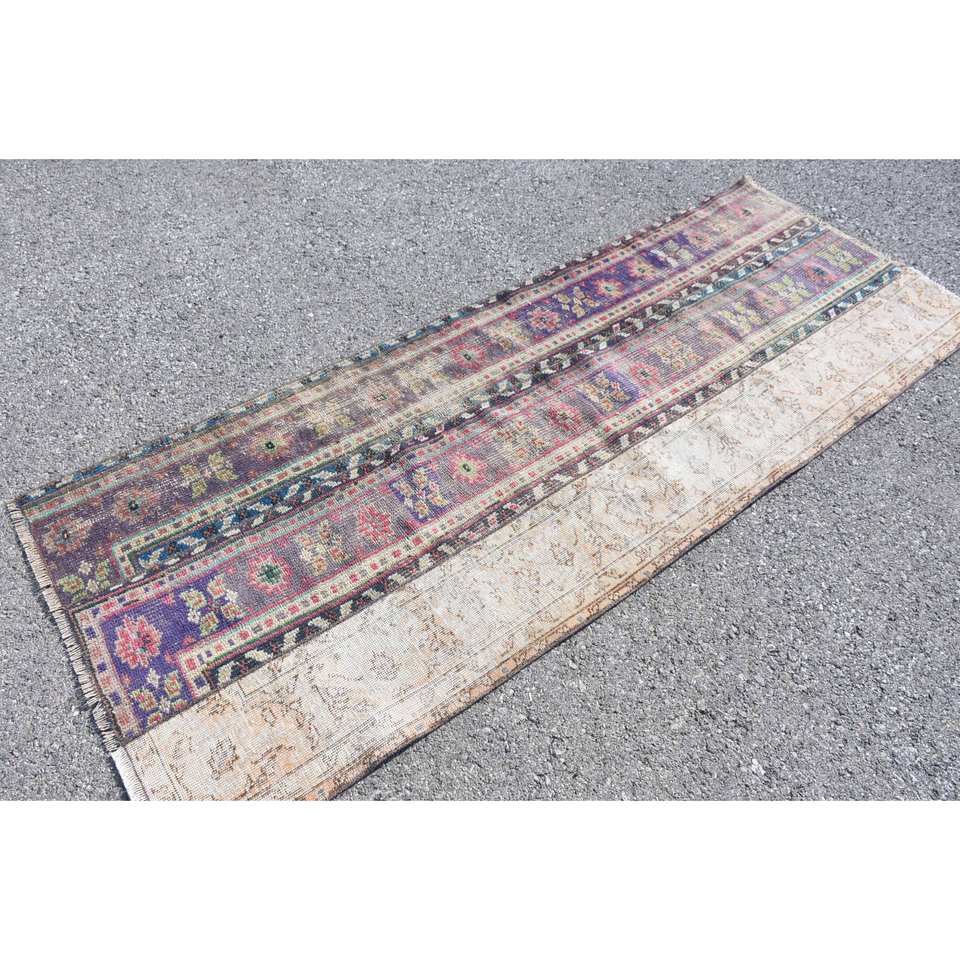พรมตุรกีวินเทจคลาสสิกสีเบจ280x760ฟุตงานเย็บปะแฮนด์เมดดีไซน์สี่เหลี่ยมผืนผ้าพรมขนสัตว์ไม้ไผ่น้ำยาง