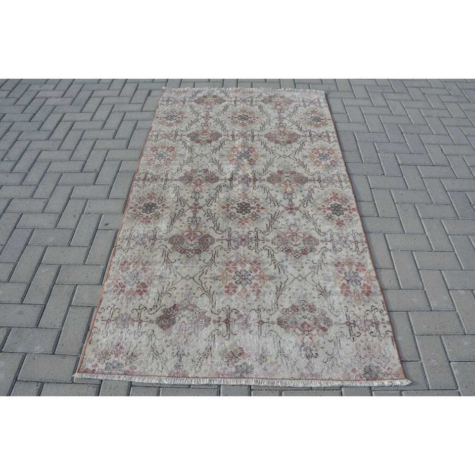 พรมตุรกีวินเทจคลาสสิกสีเบจ3.7 x 6.5ft ขนแกะเย็บปะติดปะต่อออกแบบยางรองหลังสำหรับโถงข้างเตียงทรงสี่เหลี่ยมผืนผ้า