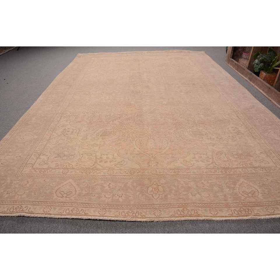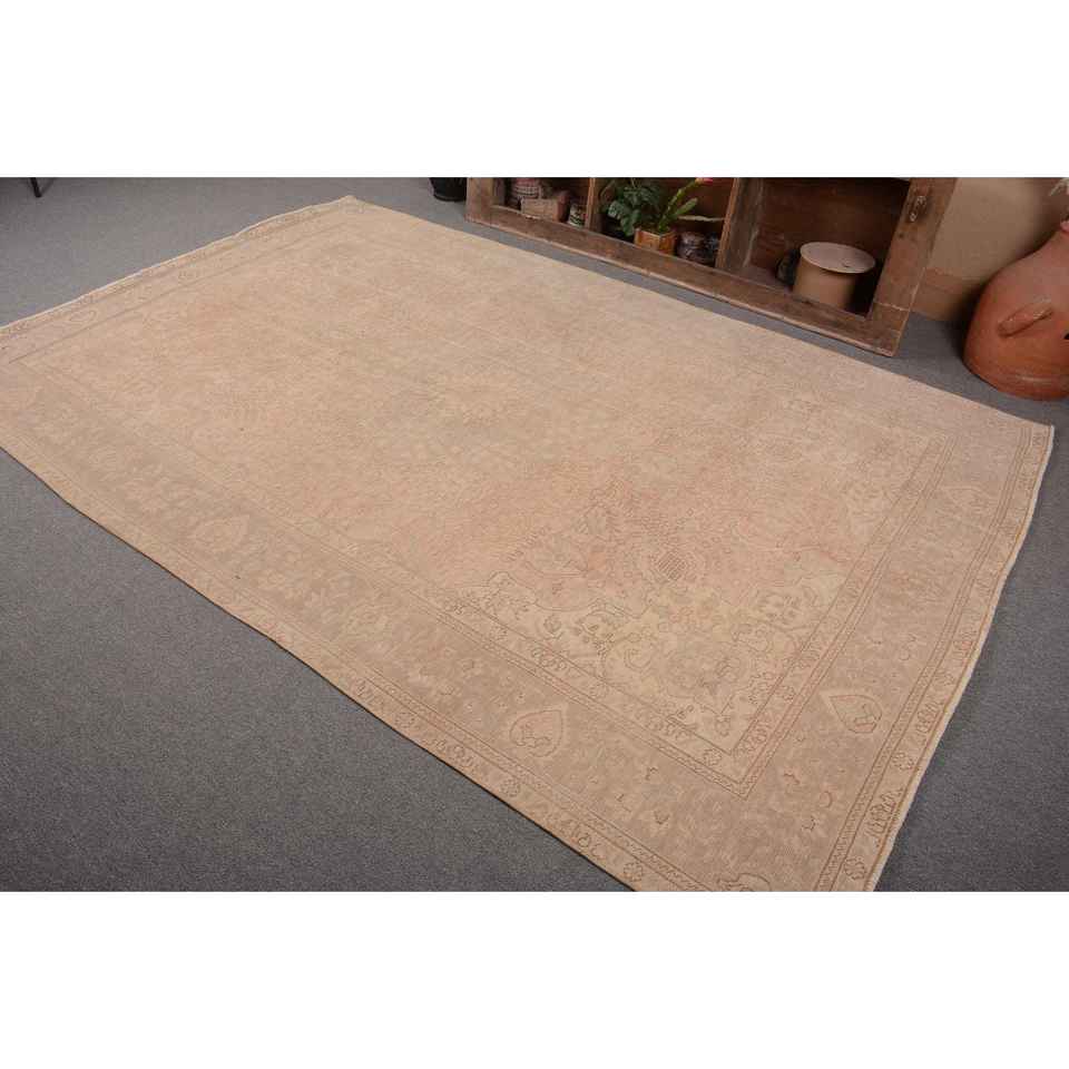 พรมตุรกีวินเทจคลาสสิกสีเบจ6.6 x 9.5ft ต่อผ้าวูลวัสดุวิสคอสสำหรับห้องนั่งเล่นหรือห้องนอน