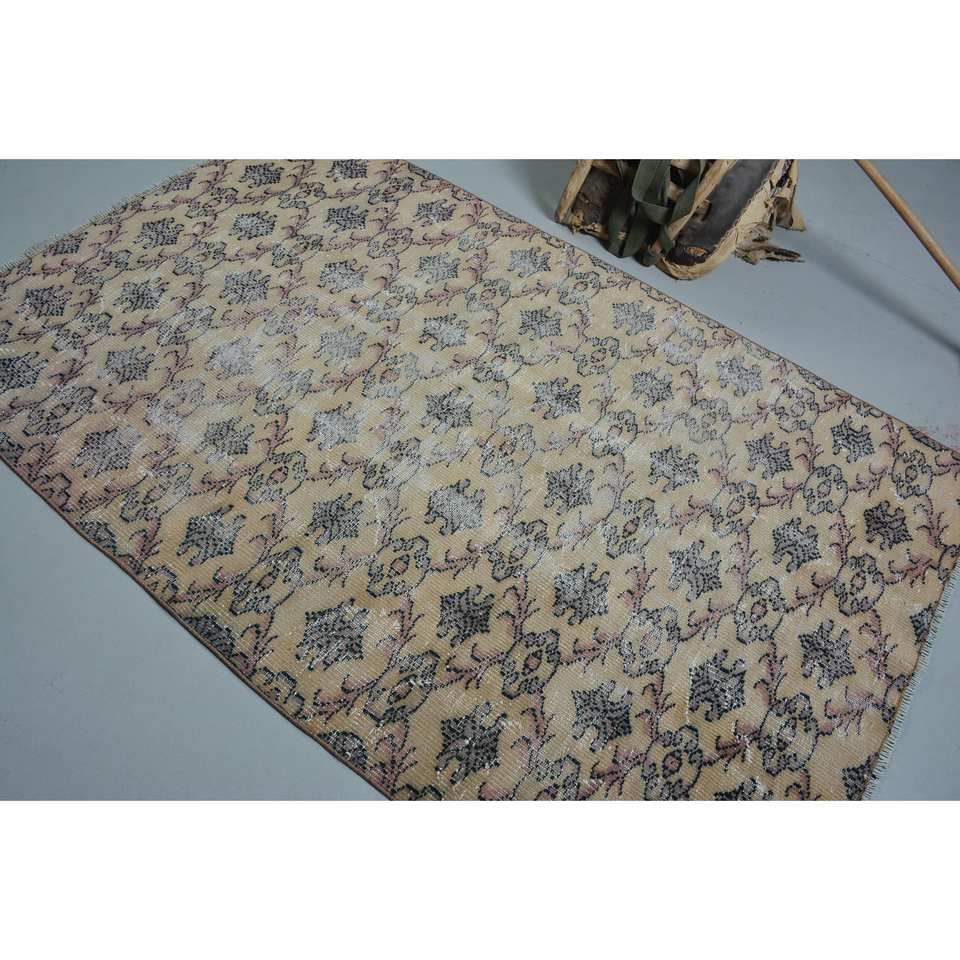 พรมตุรกีวินเทจคลาสสิกสีเบจสีดำ7.2ft 4.7 x ดีไซน์การเย็บปะติดปะต่อกันวัสดุโพลีเอสเตอร์ขนสัตว์สำหรับห้องนั่งเล่นห้องนอนสำหรับวัยรุ่น