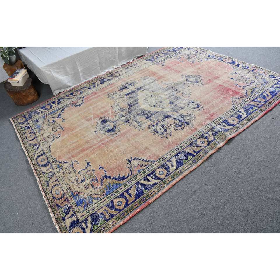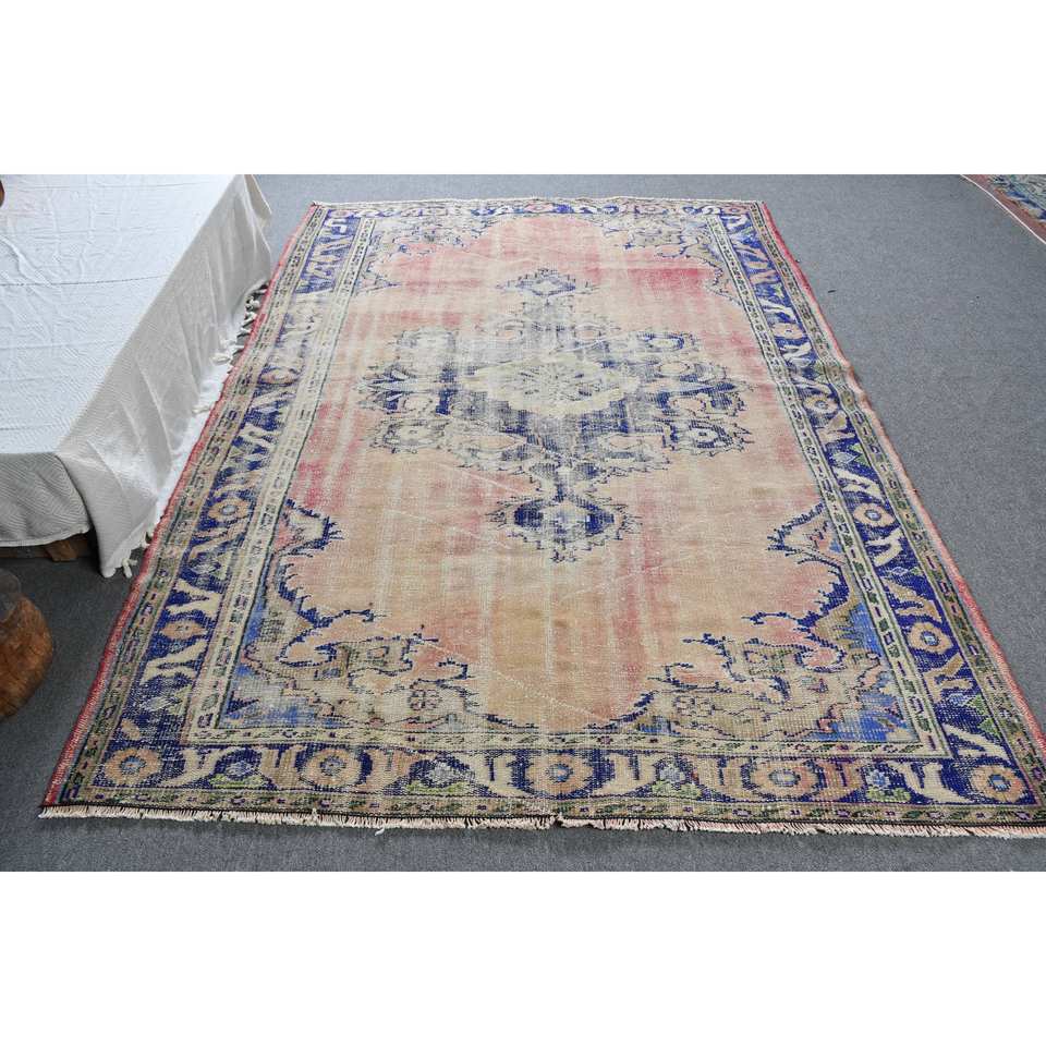 พรมตุรกีวินเทจคลาสสิกสีเบจสีฟ้า5.9 x 8.5ft แฮนด์เมดผ้าขนสัตว์ยางมีการเย็บปะติดปะต่อกันออกแบบสไตล์ทาบริซสำหรับวัยรุ่นที่อยู่อาศัย