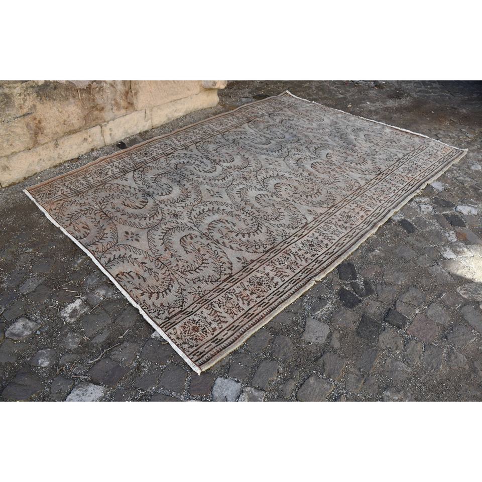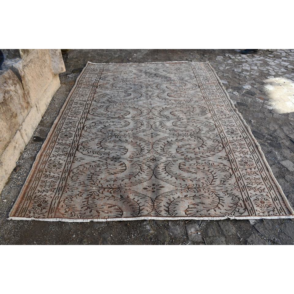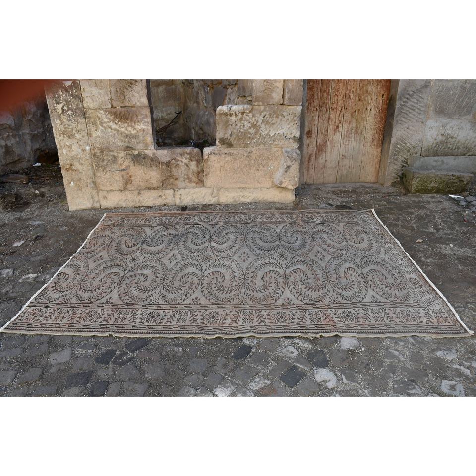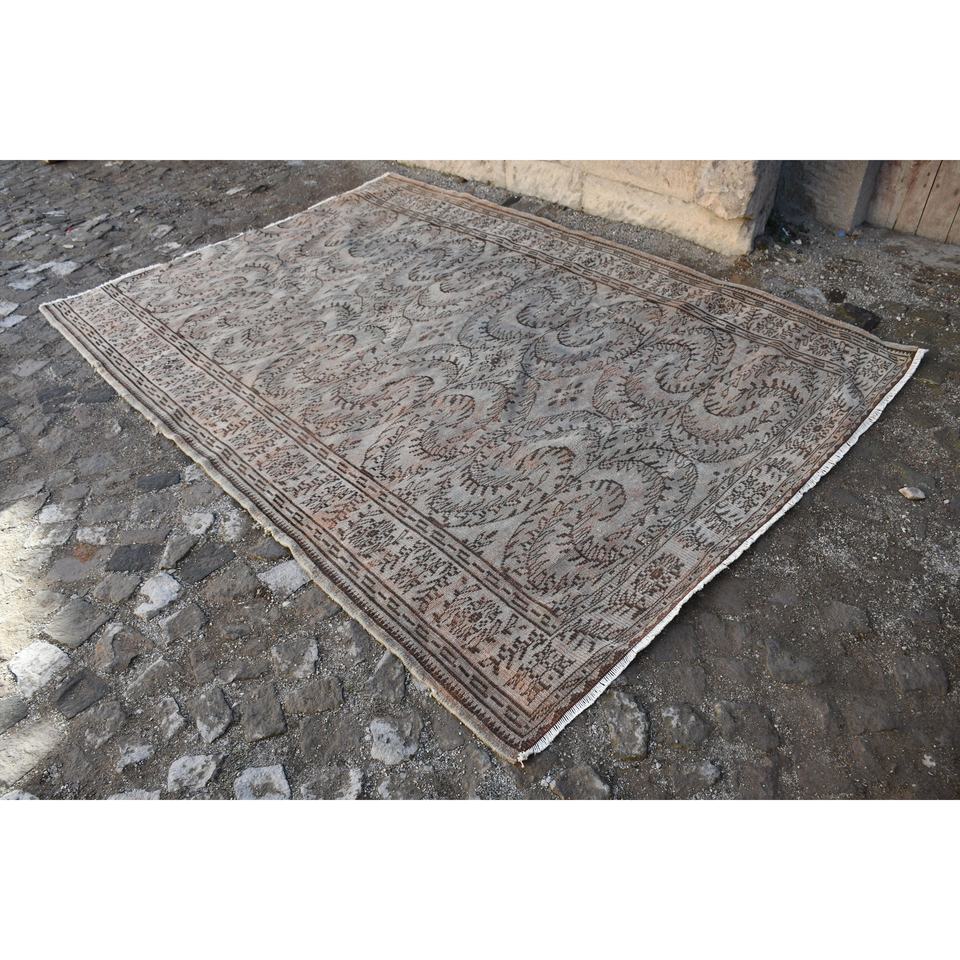 พรมตุรกีวินเทจคลาสสิกสีเบจสีน้ำตาลขนาด6.2x8.8ฟุตพื้นที่ขนาดใหญ่ผ้าขนสัตว์รูปแบบการเย็บปะติดปะต่อกันด้านหลังสำหรับห้องโถงห้องนอน