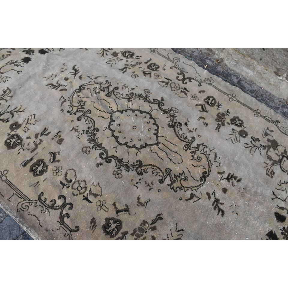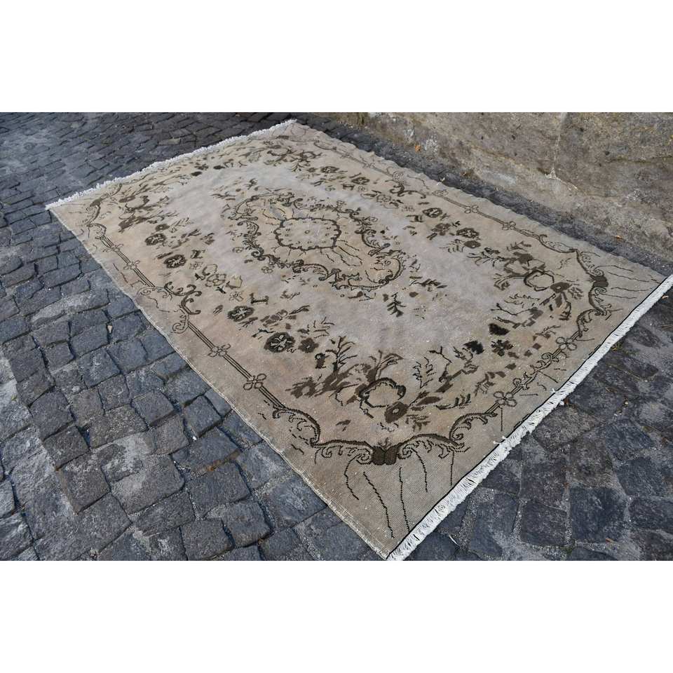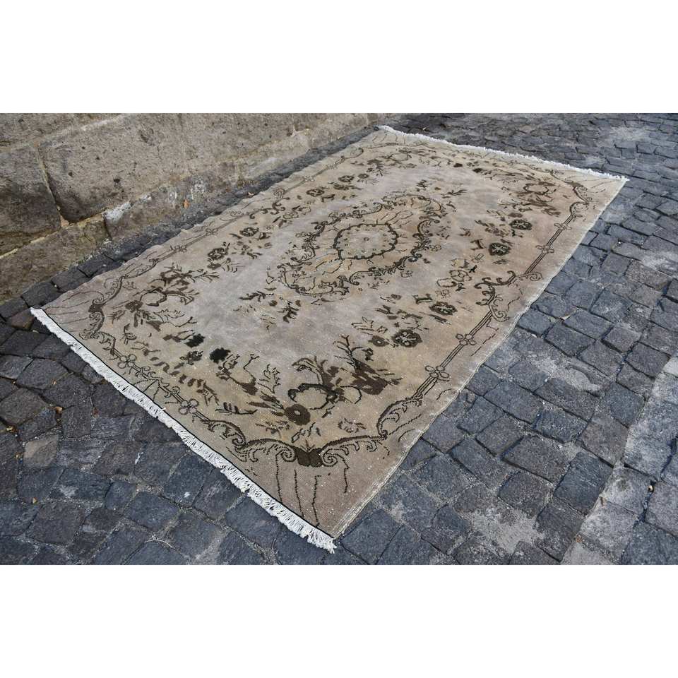 พรมตุรกีวินเทจคลาสสิกสีเบจสีน้ำตาล5.4 x 8.3ft ผ้าขนสัตว์ผ้ากำมะหยี่ลายเย็บปะติดปะต่อกันด้านหลังสำหรับห้องนั่งเล่นห้องนอนห้องโถง