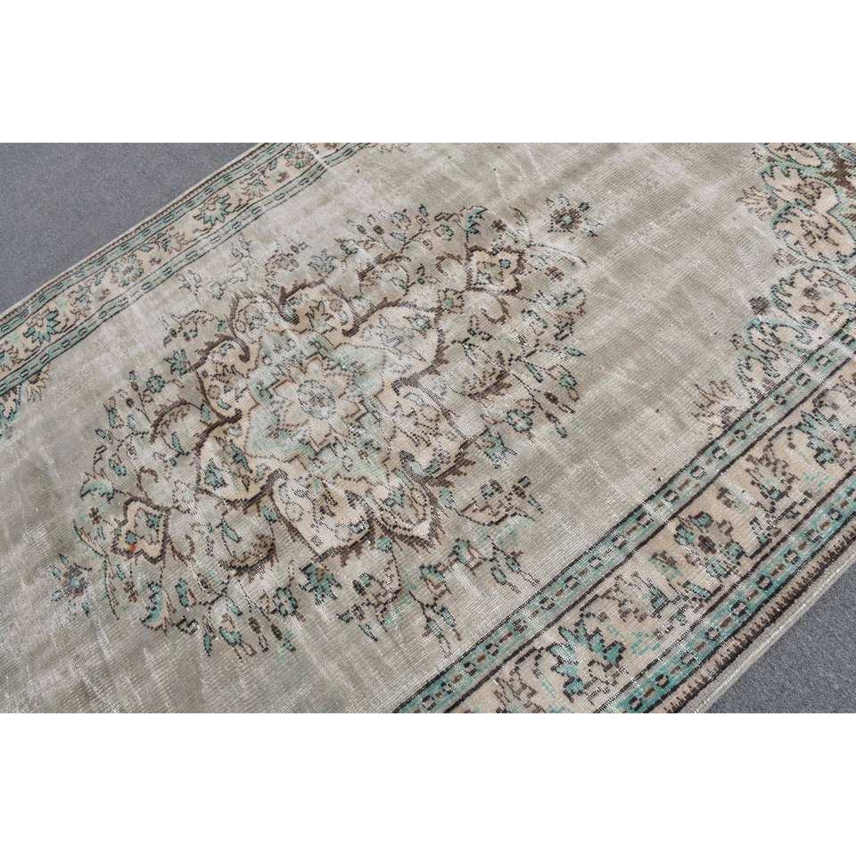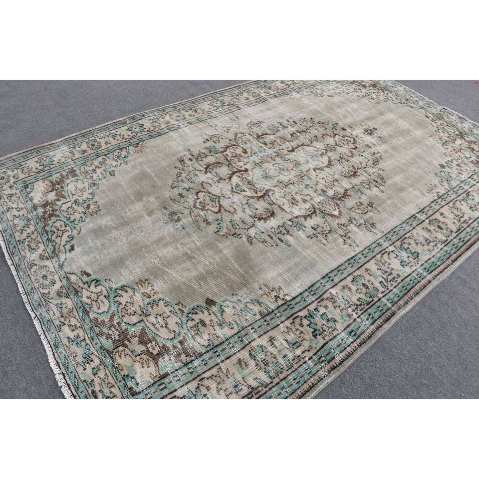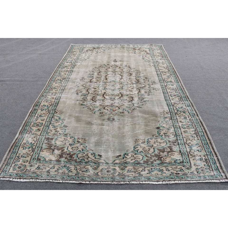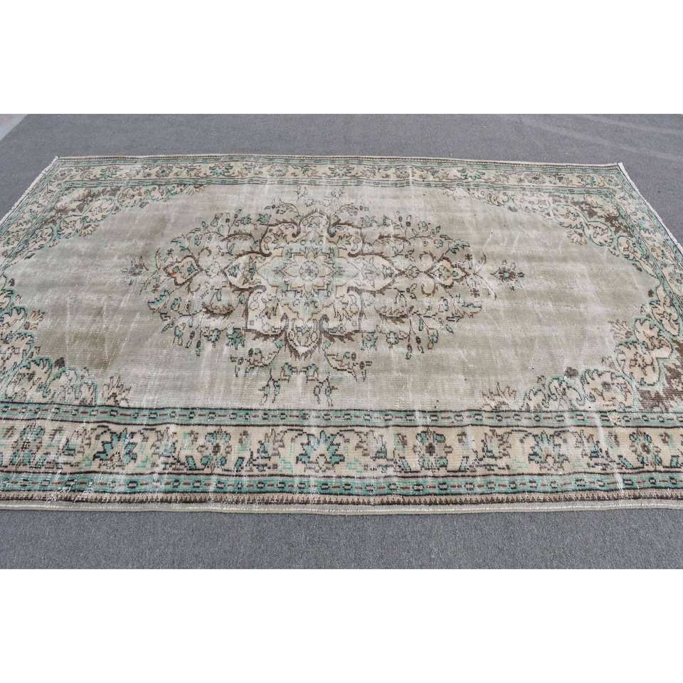 พรมตุรกีวินเทจคลาสสิกสีเบจสีเขียว6.2 x 9.5ft พื้นที่ขนาดใหญ่ขนสัตว์เย็บปะติดปะต่อกันด้วยยางรองสำหรับห้องโถงหรือห้องนอน