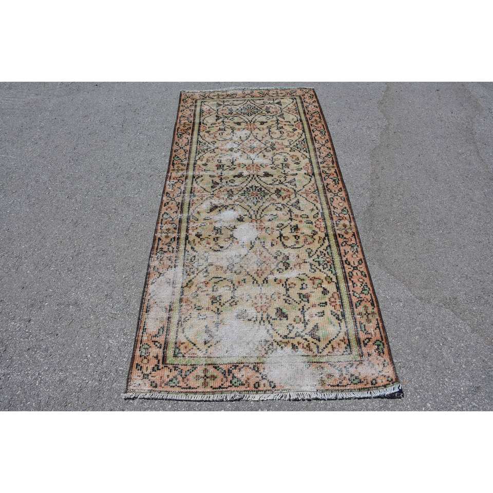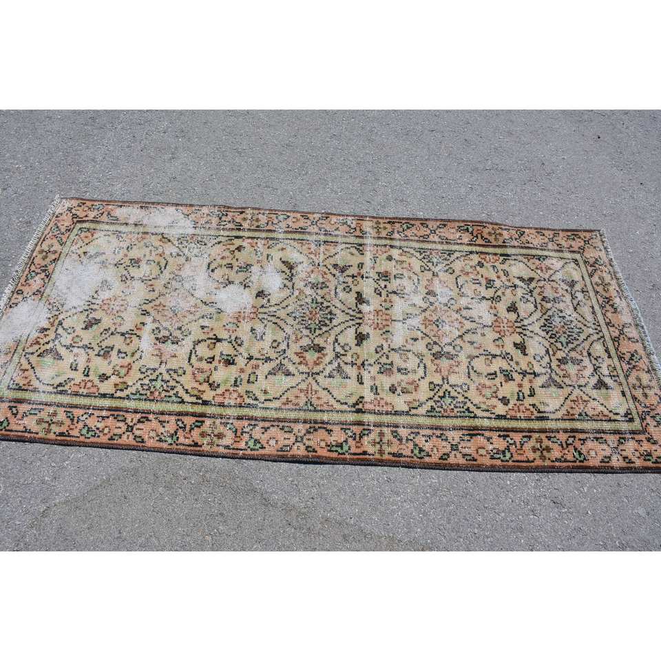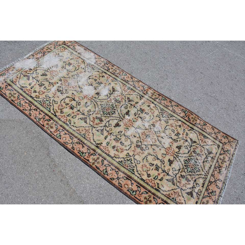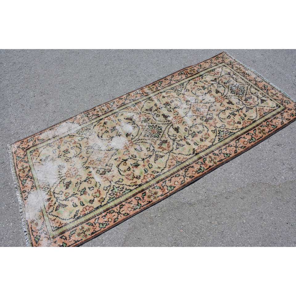 พรมตุรกีวินเทจคลาสสิกสีเบจสีส้มงานแฮนด์เมด3x6.6ft รูปสี่เหลี่ยมผืนผ้าการออกแบบการเย็บปะติดปะต่อกันสำหรับห้องนั่งเล่นวัยรุ่นผ้าขนสัตว์ยางเหนียว