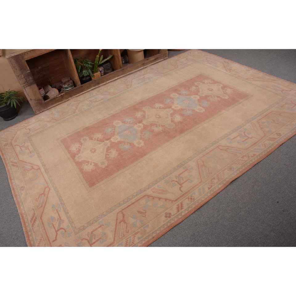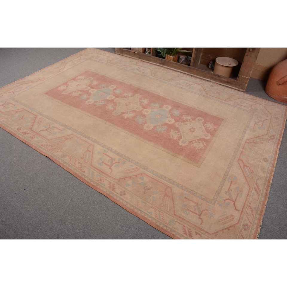 พรมตุรกีวินเทจคลาสสิกสีเบจสีชมพู9.1ft x 6.2 x วัสดุขนสัตว์ทอปะต่อสำหรับห้องนั่งเล่นห้องโถงสำหรับวัยรุ่น