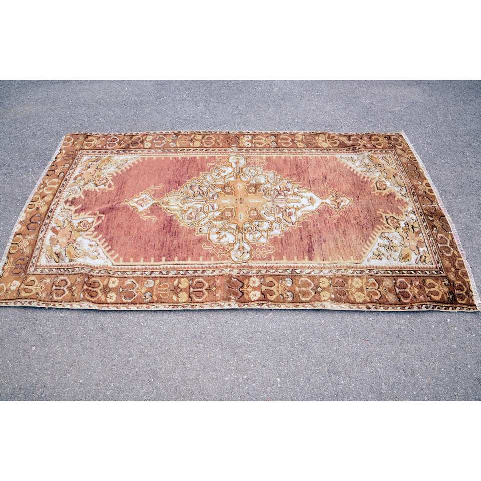 พรมตุรกีวินเทจคลาสสิกสีน้ำตาลเบจ3.7 x 6.7ft ต่อผ้าวูลพร้อมแผ่นรองยางสำหรับห้องนั่งเล่นห้องนอนพื้นที่วัยรุ่น