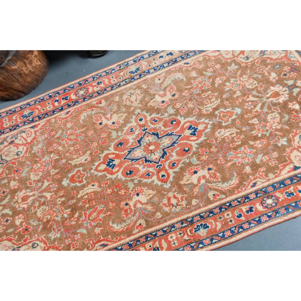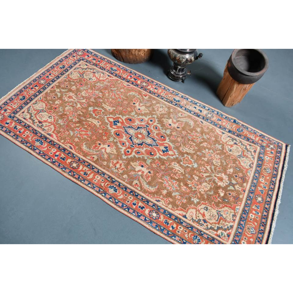 พรมสไตล์ตุรกีโบราณลายคลาสสิคสีน้ำตาลเบจ3.3 x 6.5ft งานปะทำด้วยมือวัสดุขนสัตว์รูปทรงสี่เหลี่ยมผืนผ้าสำหรับข้างเตียง