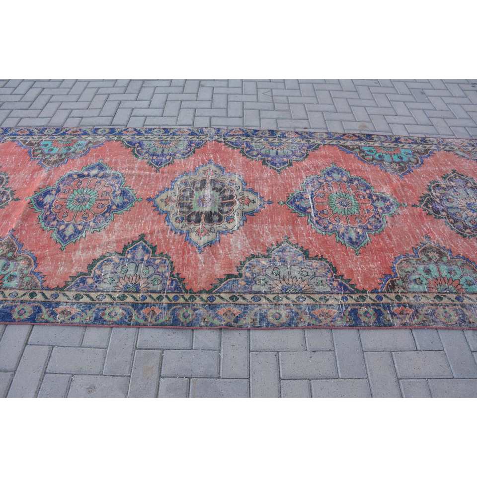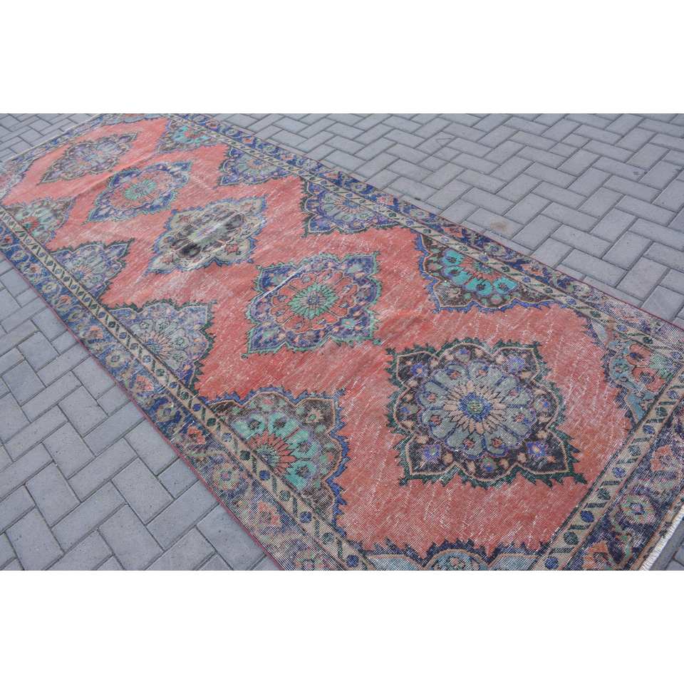 พรมตุรกีวินเทจดีไซน์คลาสสิกผ้าแจ็คการ์ดผ้าขนสัตว์ลาเท็กซ์ขนแกะขนาด10มม. 4.4x11.8ft สี่เหลี่ยมมุมฉากสำหรับโถงรถ
