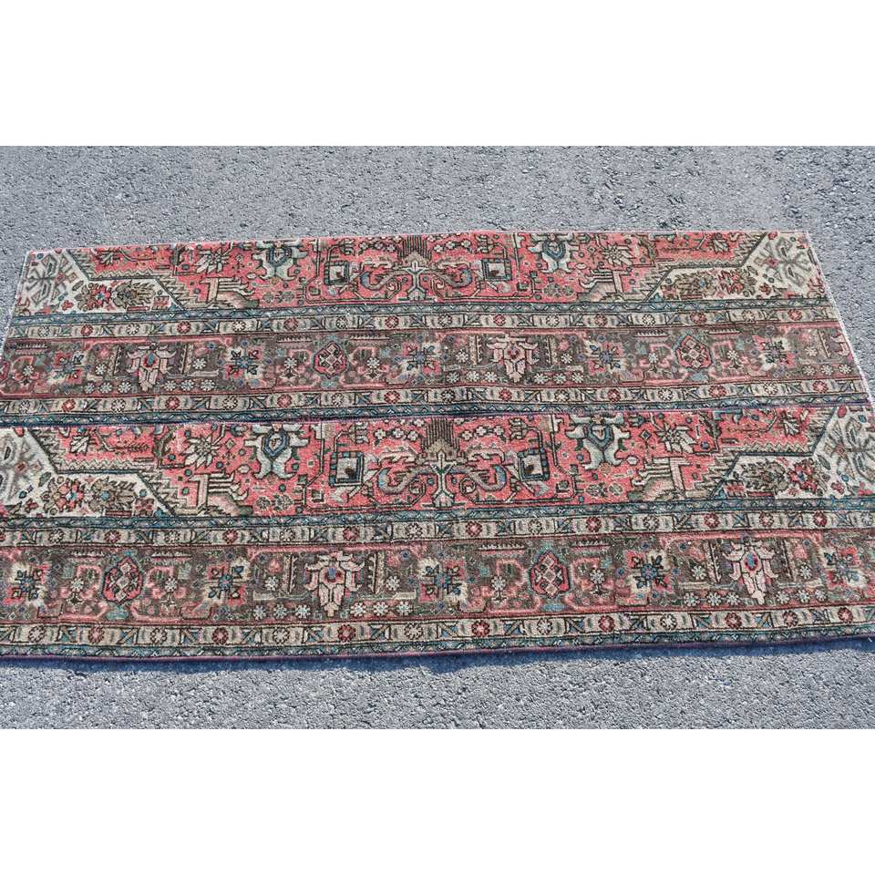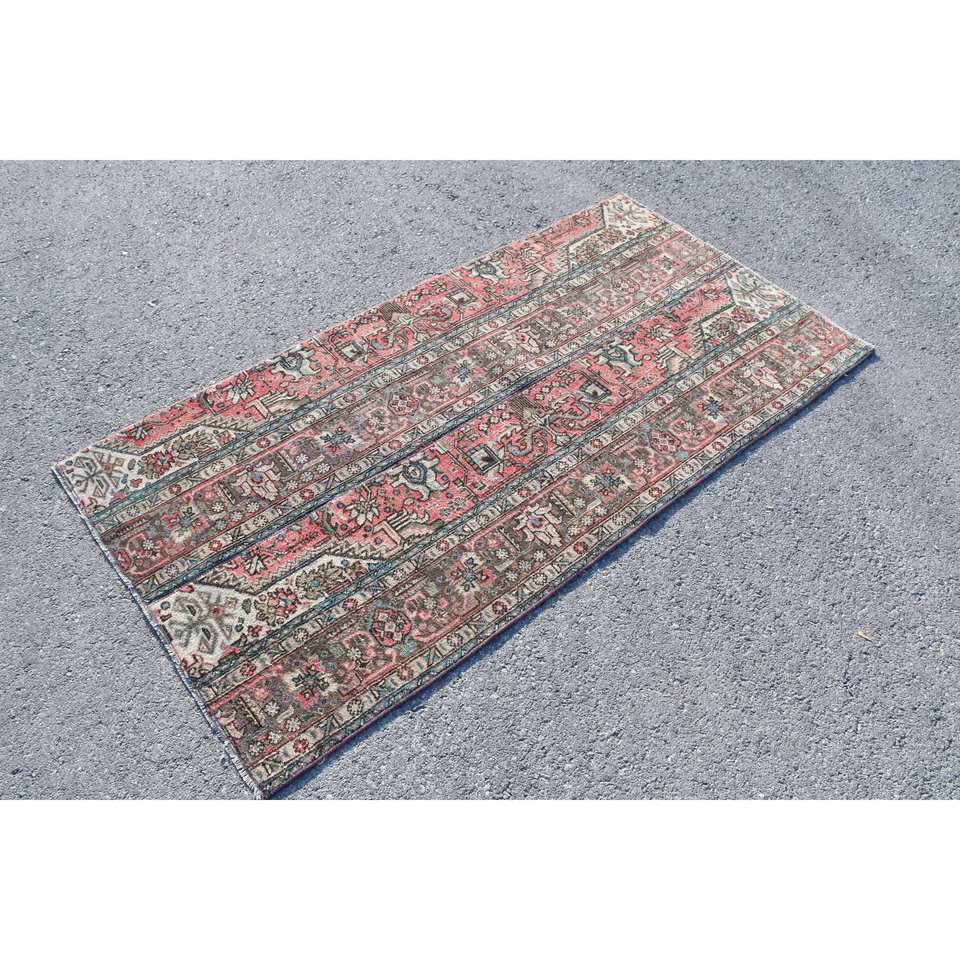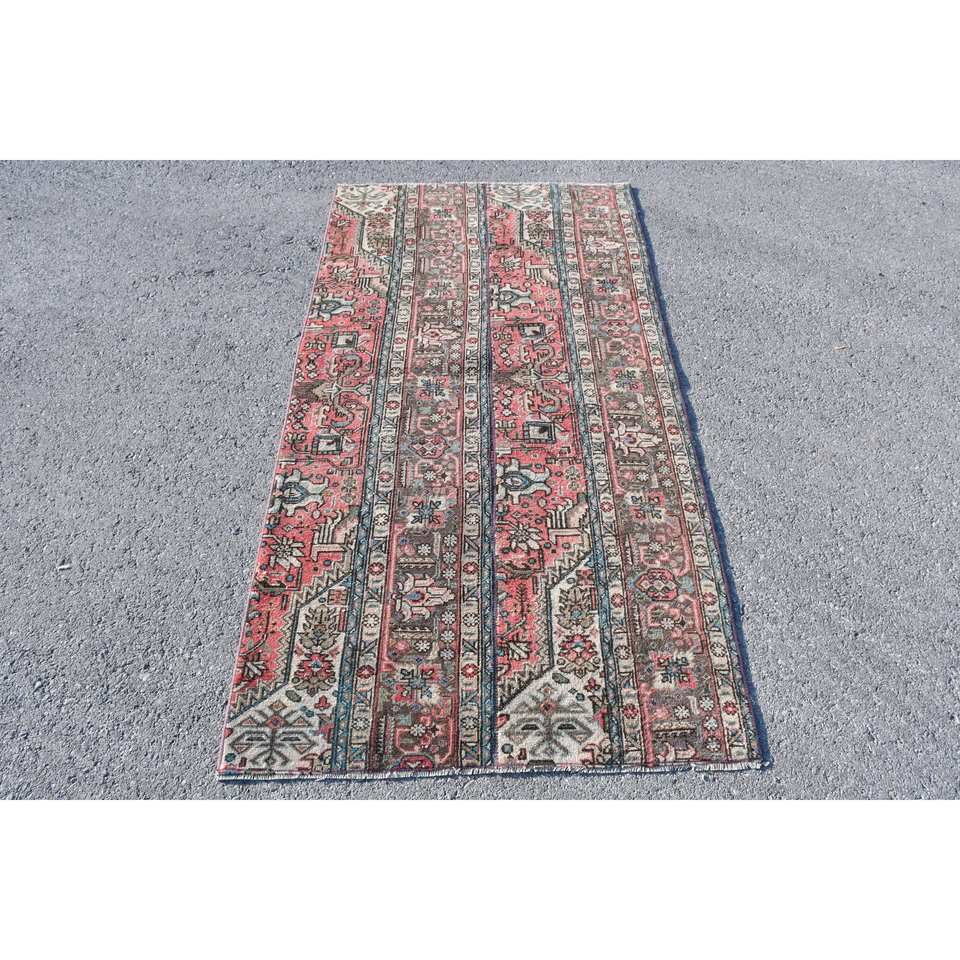 พรมตุรกีวินเทจคลาสสิกสีเบจสีแดง3.3 x 6.4ft พื้นที่ขนาดใหญ่ผ้าขนสัตว์ด้านหลังเย็บปะติดปะต่อกันนามธรรมสำหรับห้องโถงห้องวัยรุ่น