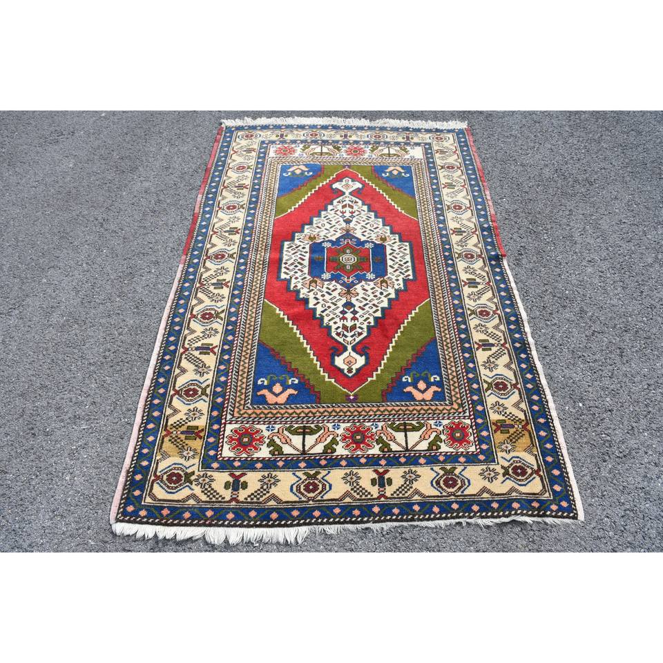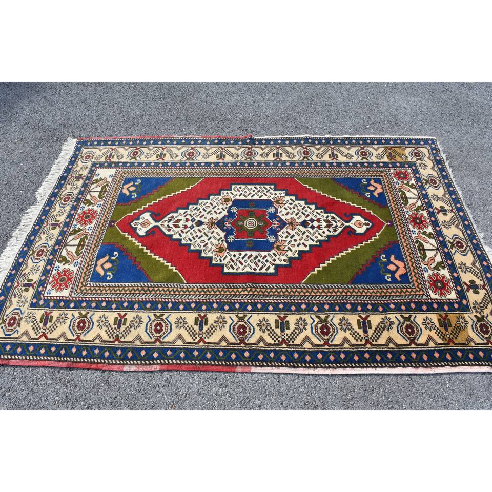 พรมตุรกีวินเทจดีไซน์คลาสสิกงานต่อผ้าสีแดงน้ำเงิน3.9 x 6.1ft ใหม่ห้องนั่งเล่นพรมขนสัตว์วัสดุยางปริศนาสี่เหลี่ยม