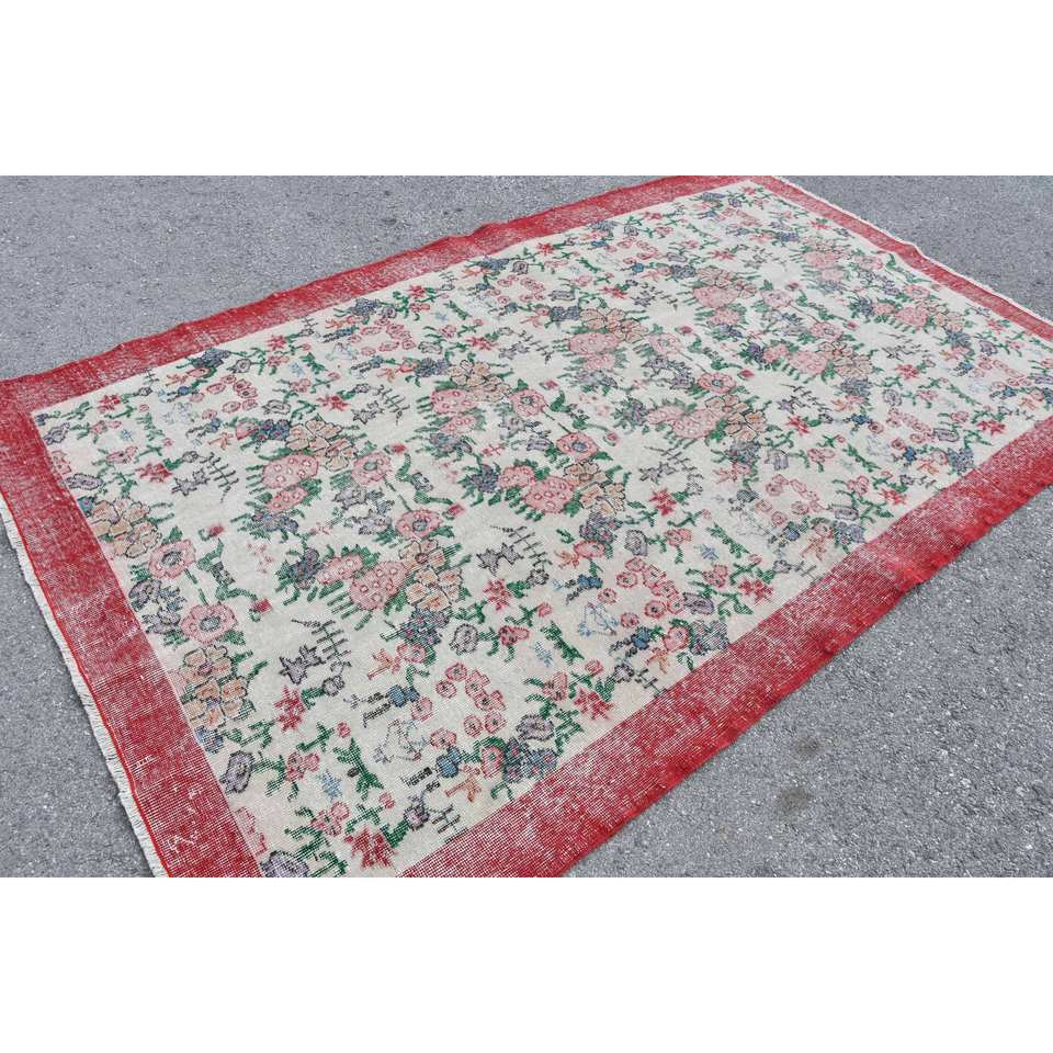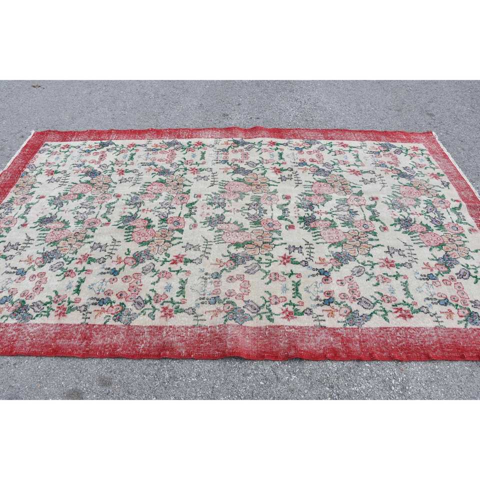 พรมตุรกีวินเทจคลาสสิกสีแดงสีขาว5.6 x 9.4ft พื้นที่ขนาดใหญ่ขนแกะเย็บปะติดปะต่อกันยางรองหลังสำหรับวัยรุ่นห้องโถงสี่เหลี่ยมผืนผ้าห้องนางแบบ