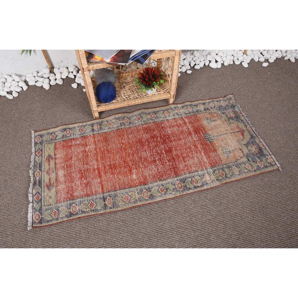 พรมตุรกีวินเทจเป็นมิตรกับสิ่งแวดล้อมแบบดั้งเดิมคลาสสิกสีแดงเบจ1.9 x 4.2ft พื้นที่ขนาดใหญ่สี่เหลี่ยมผืนผ้าการออกแบบการเย็บปะติดปะต่อกันขนสัตว์หนา10มม.
