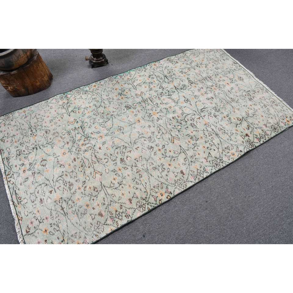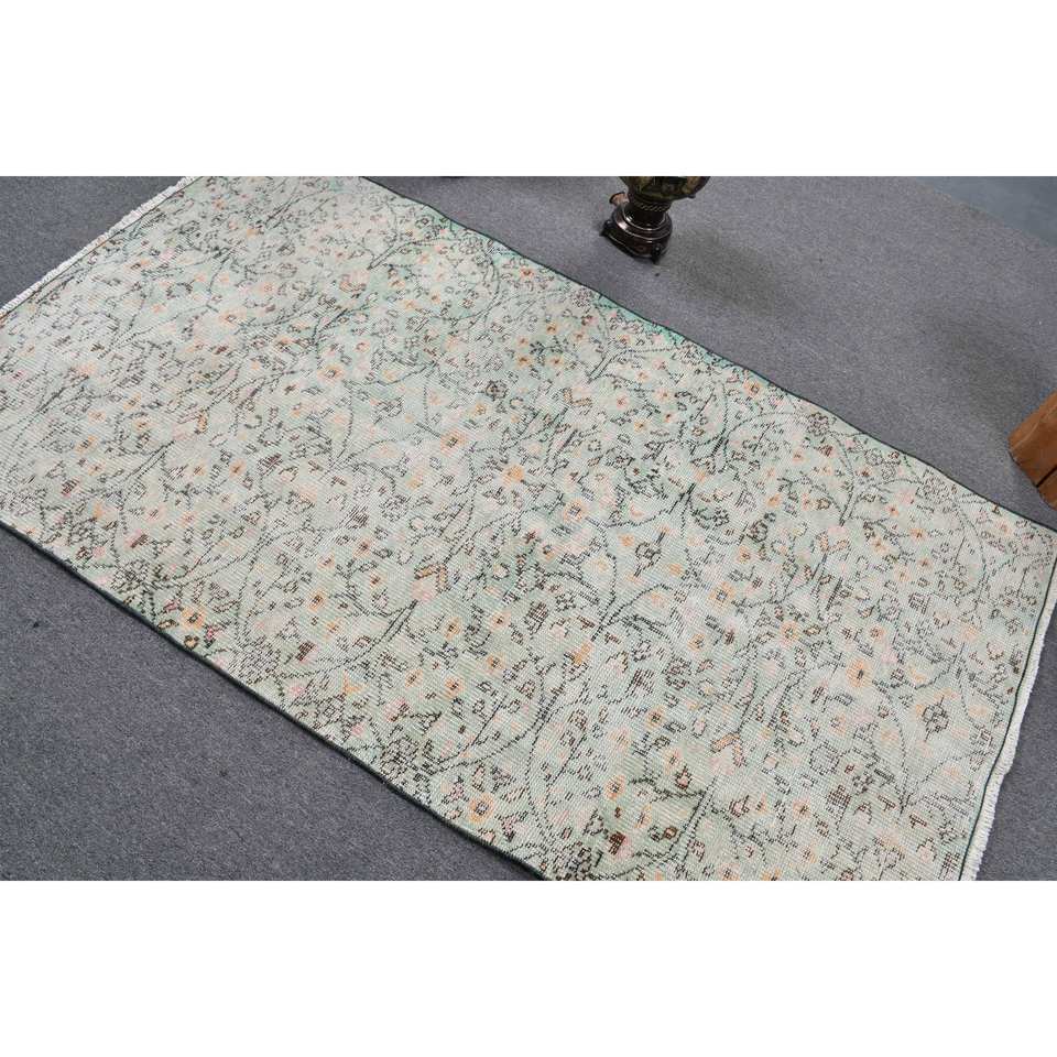 พรมตุรกีวินเทจขนาดใหญ่3.6 x พื้นที่6.5ft สีเขียวผ้าขนสัตว์สีส้มดีไซน์แบบนามธรรมสำหรับห้องโถงพรมยางสี่เหลี่ยม
