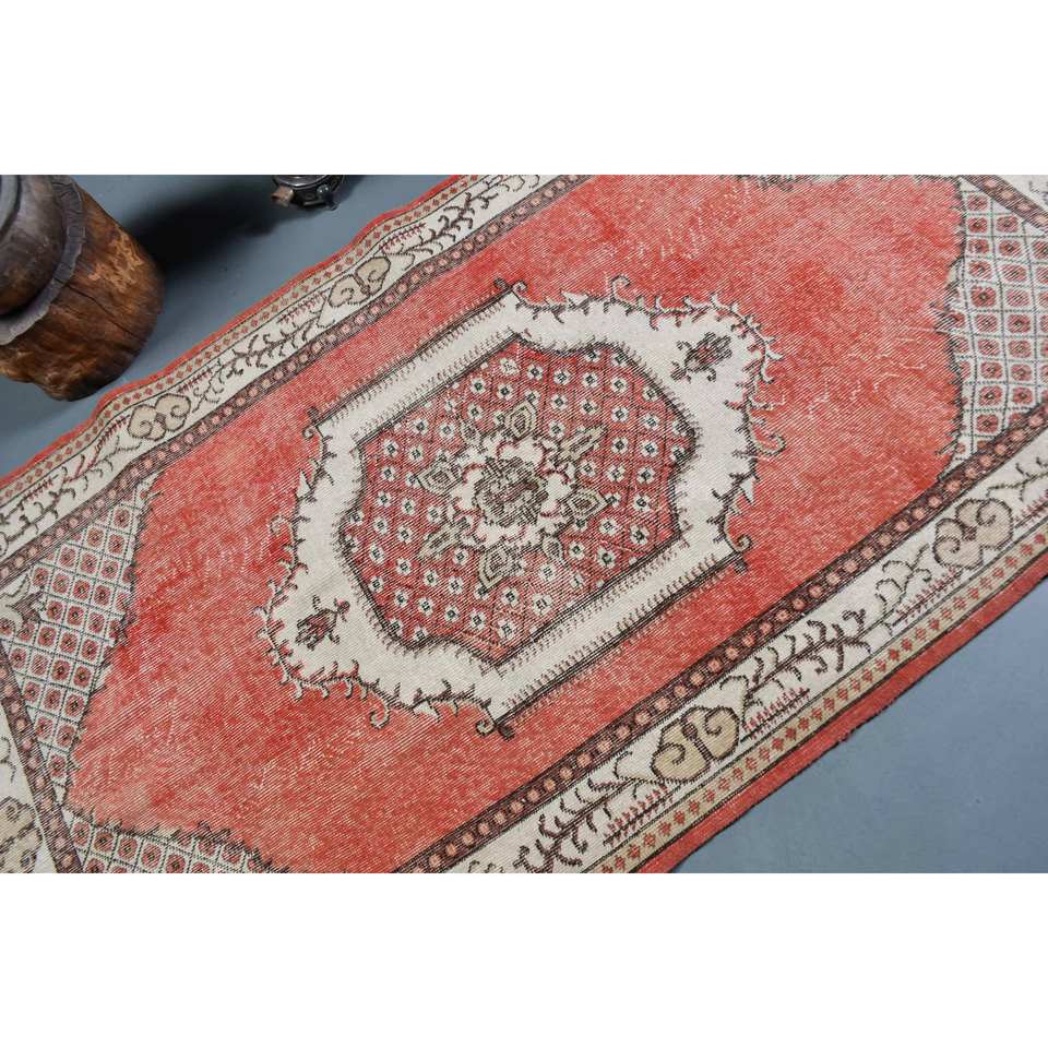 พรมตุรกีโบราณขนาดใหญ่3.9 x พื้นที่7.3ft คลาสสิกสีแดงขาวปะต่อสไตล์โบฮีเมียนลาเท็กซ์ขนสัตว์สำหรับตกแต่งห้องโถงห้อง