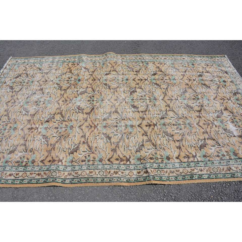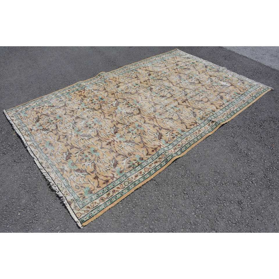 พรมตุรกีวินเทจขนาดใหญ่สีเบจสีเขียวผ้าขนสัตว์ลาเท็กซ์5x8.4ft รูปแบบการเย็บปะติดปะต่อกันสี่เหลี่ยมผืนผ้าออกแบบทาบริซสำหรับวัยรุ่นพรมห้อง