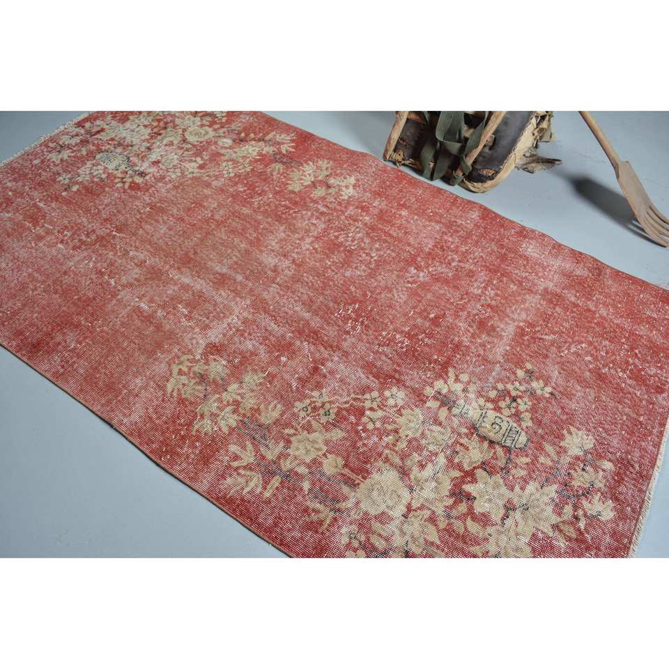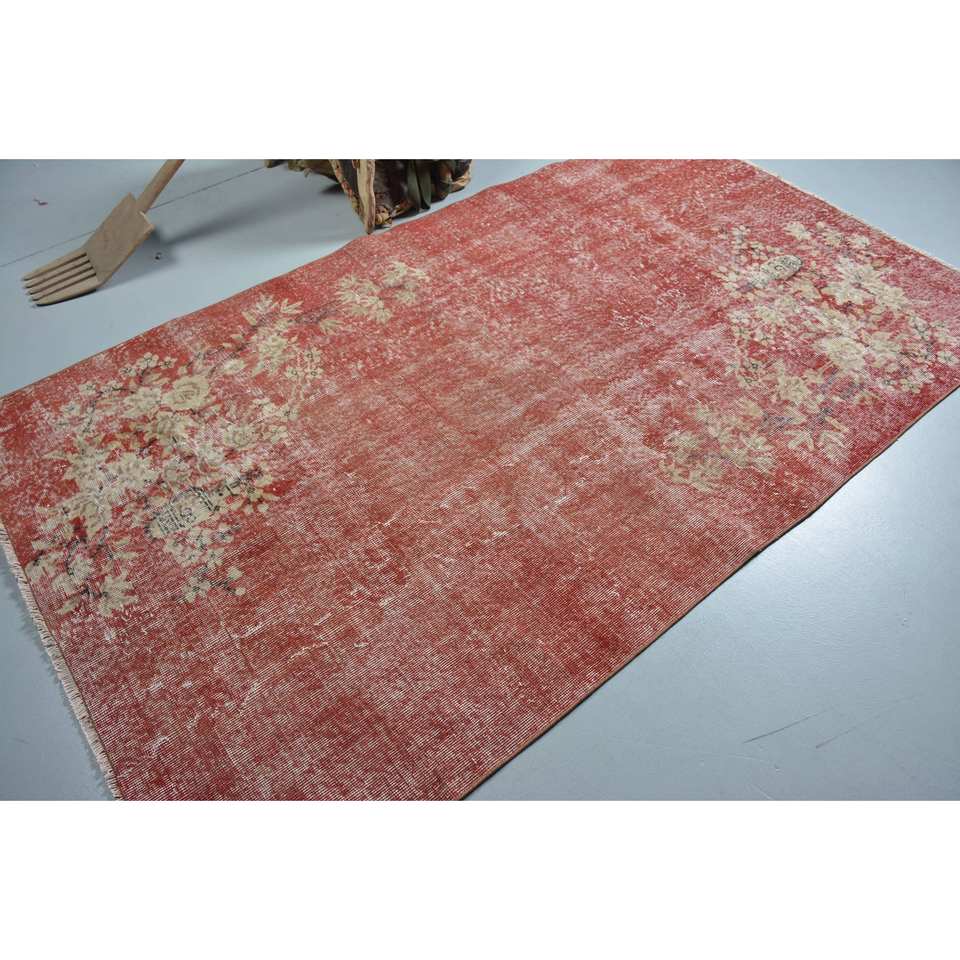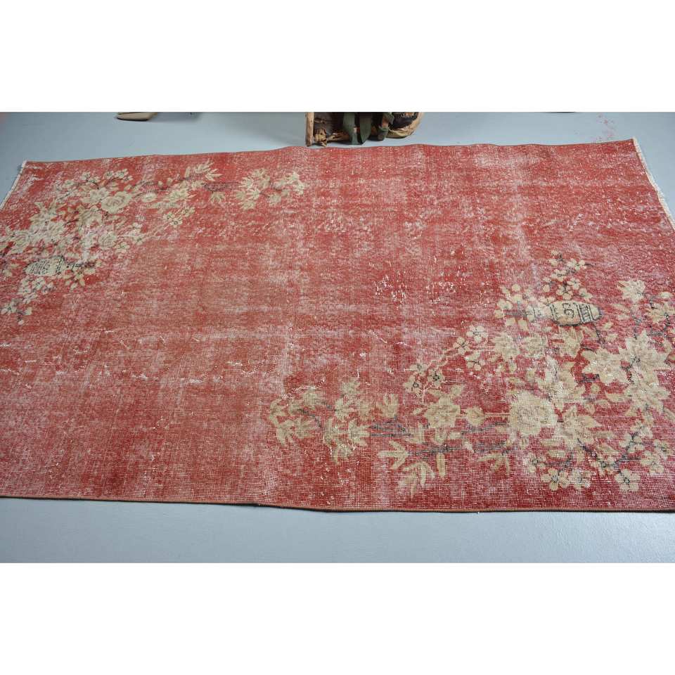 พรมตุรกีโบราณพื้นที่ขนาดใหญ่4.7 x 8.1ft คลาสสิกสีแดงสีเบจนามธรรมลวดลายวัสดุขนสัตว์น้ำยาง10มม. สำหรับห้องโถง