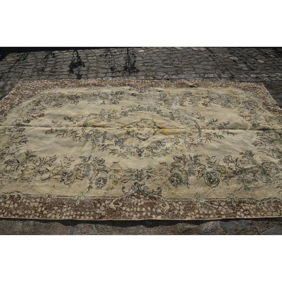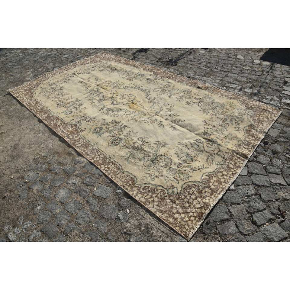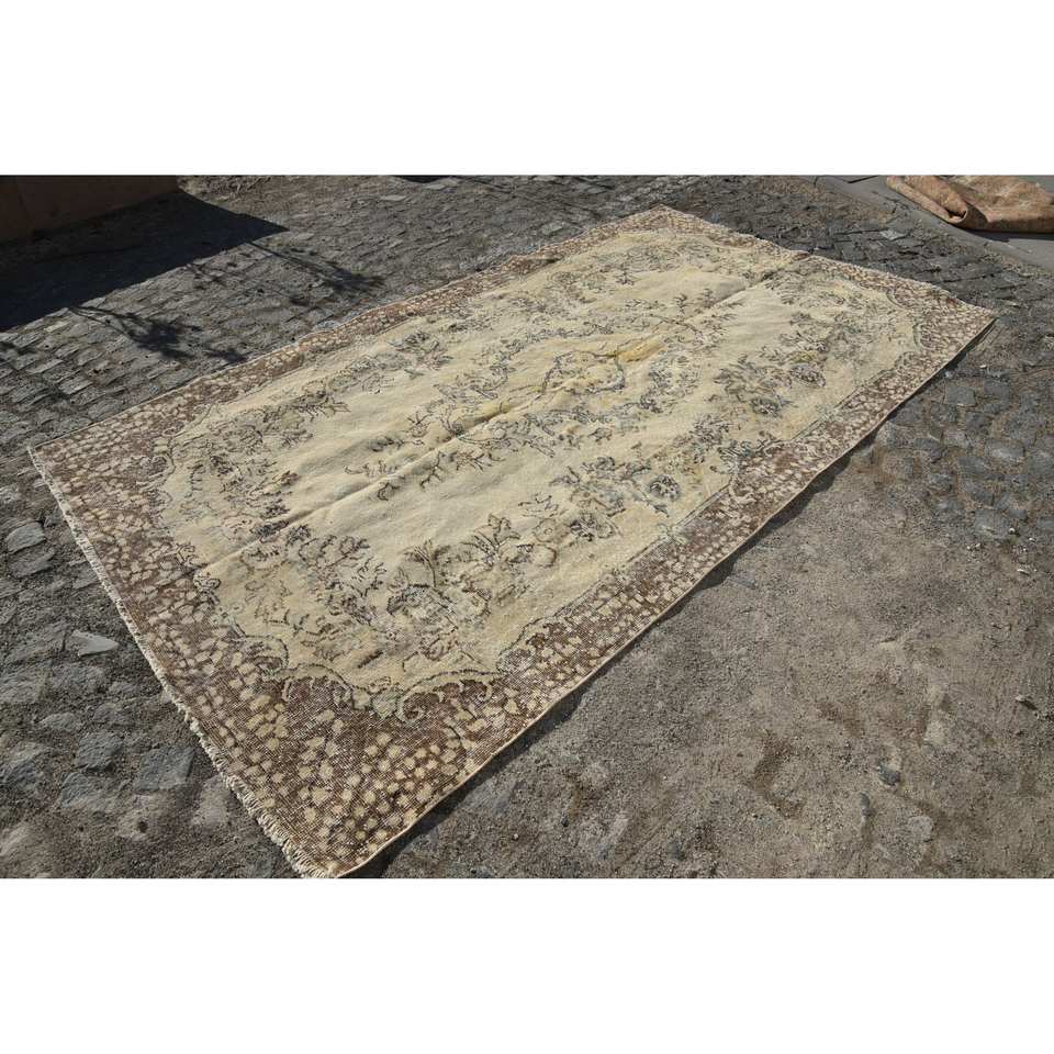 พรมปูพื้นสไตล์ตุรกีวินเทจขนาดใหญ่5.4 x 9.7ft แบบคลาสสิกสีเบจสีน้ำตาลปะต่อวัสดุขนสัตว์ด้านหลังสำหรับห้องนอนห้องโถง