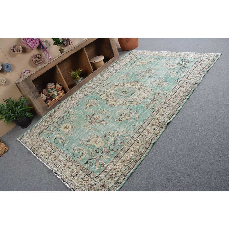 พรมตุรกีวินเทจขนาดใหญ่5.4 x 8.8ft สีเขียวคลาสสิกการเย็บปะติดปะต่อกันการออกแบบขนแกะสำหรับสี่เหลี่ยมผืนผ้าพรมห้องโถงห้อง