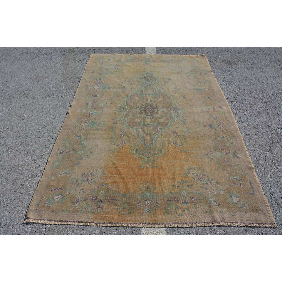 พรมตุรกีวินเทจผืนใหญ่5.1x7.6ฟุตผ้าขนแกะสีส้มสีเขียววัสดุด้านหลังสำหรับห้องโถง