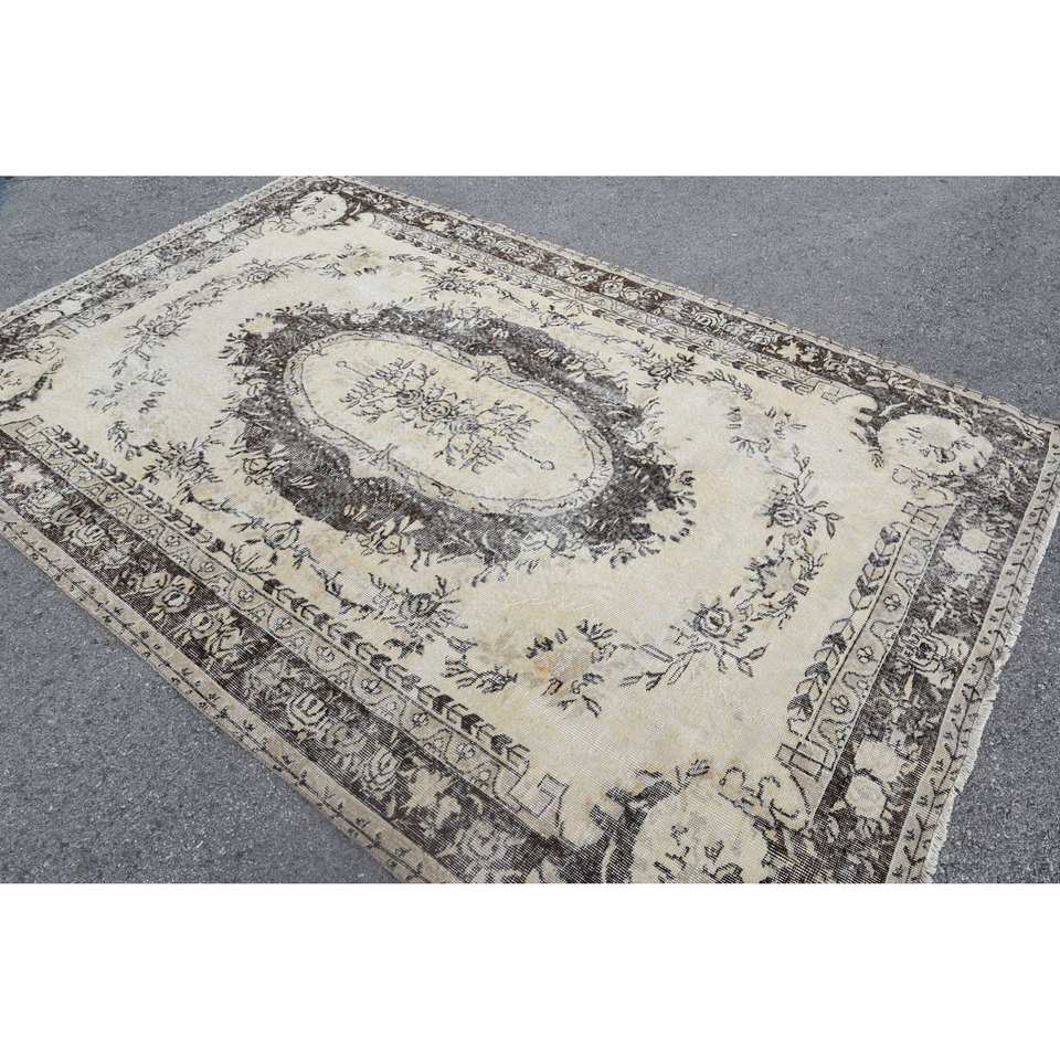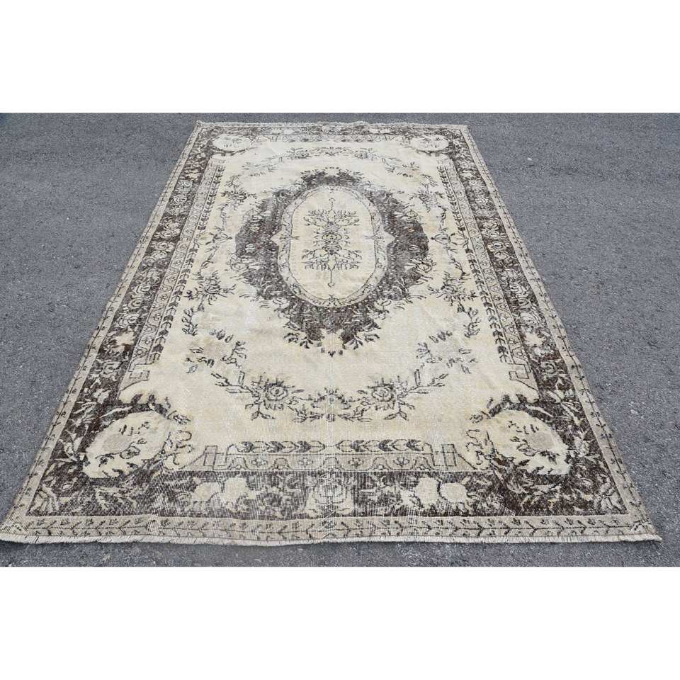 พรมสไตล์ตุรกีโบราณขนาดใหญ่6.4x9.7ฟุตลายปะต่อสีน้ำตาลเบจคลาสสิกน้ำยางวัสดุขนสัตว์สำหรับห้องนอนห้องโถง
