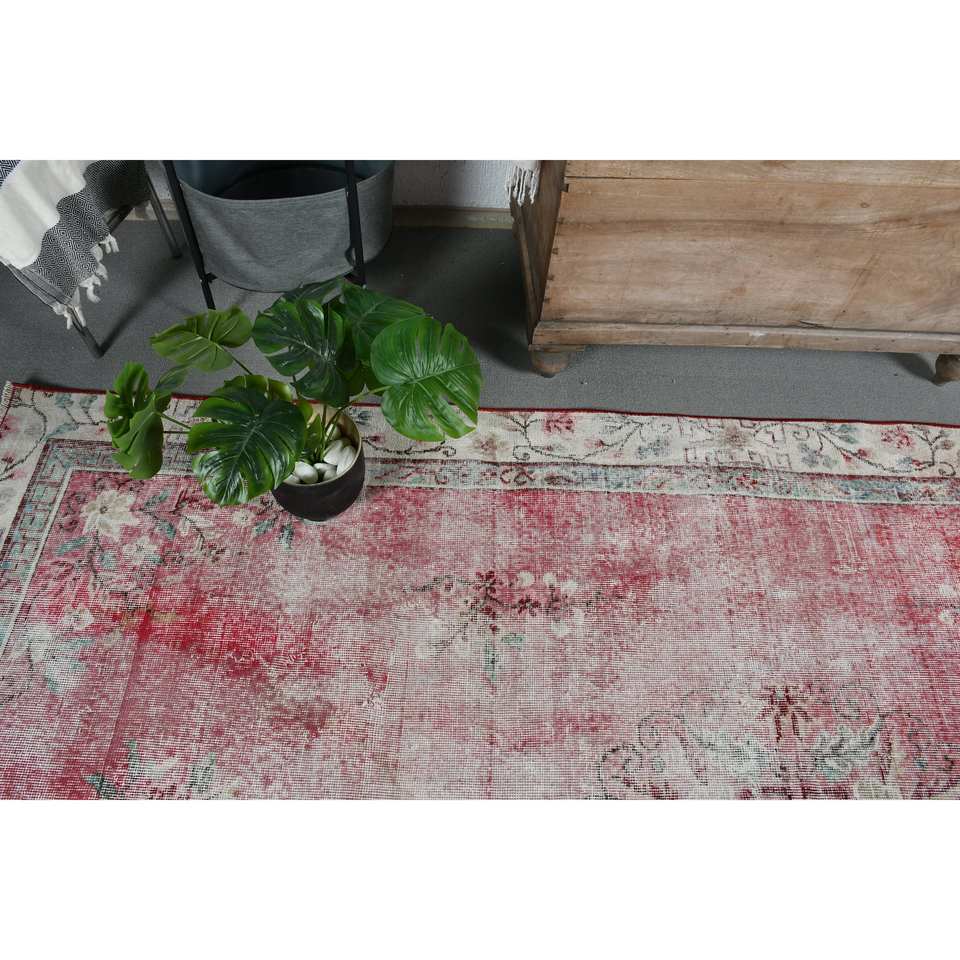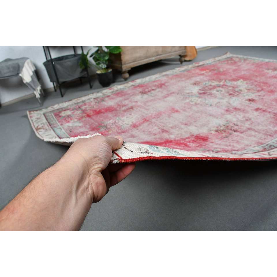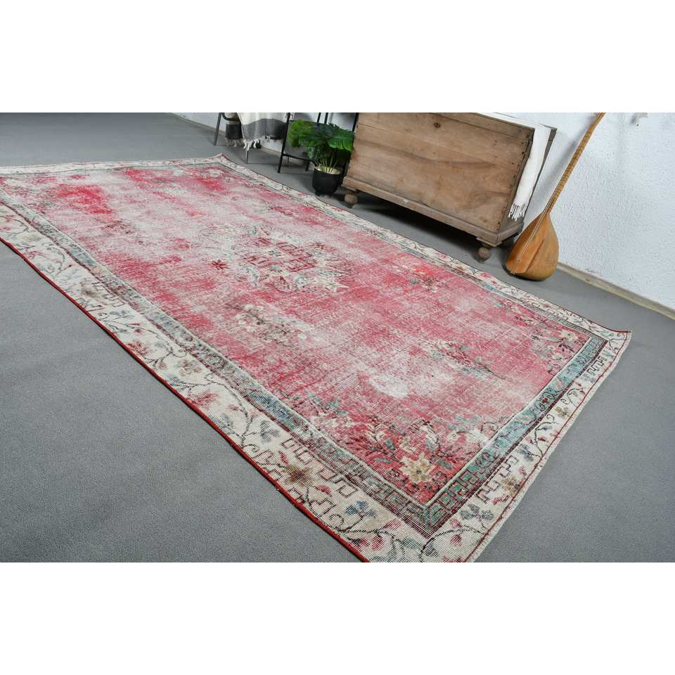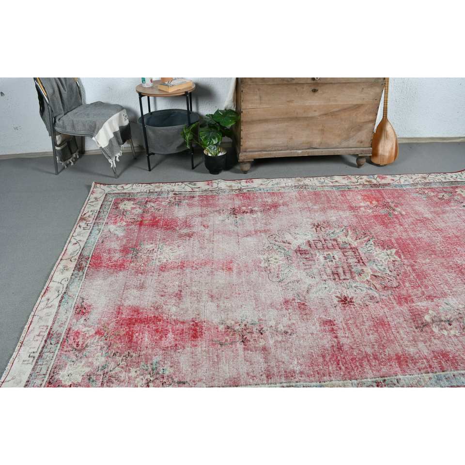 พรมตุรกีโบราณพื้นที่ขนาดใหญ่6.1 x 9.5ft คลาสสิกสีแดงสีเบจแอบสแตรกต์วัสดุขนสัตว์ยางขนาด10มม. สำหรับตกแต่งห้องโถง