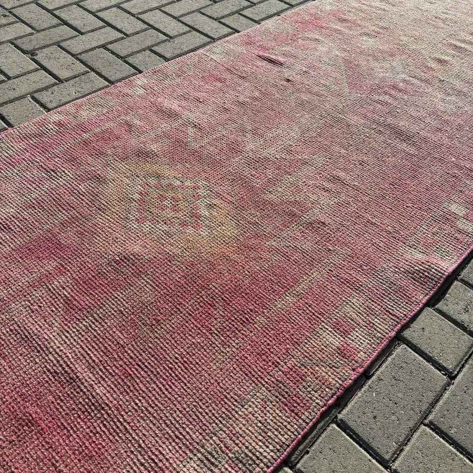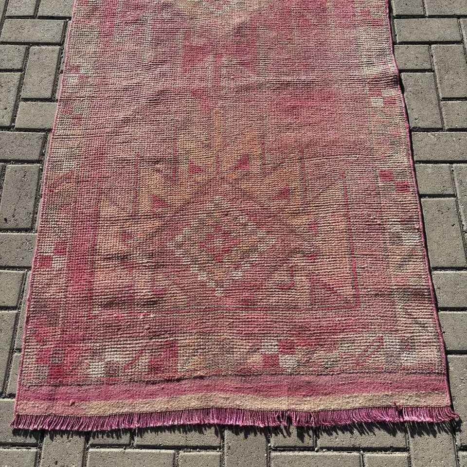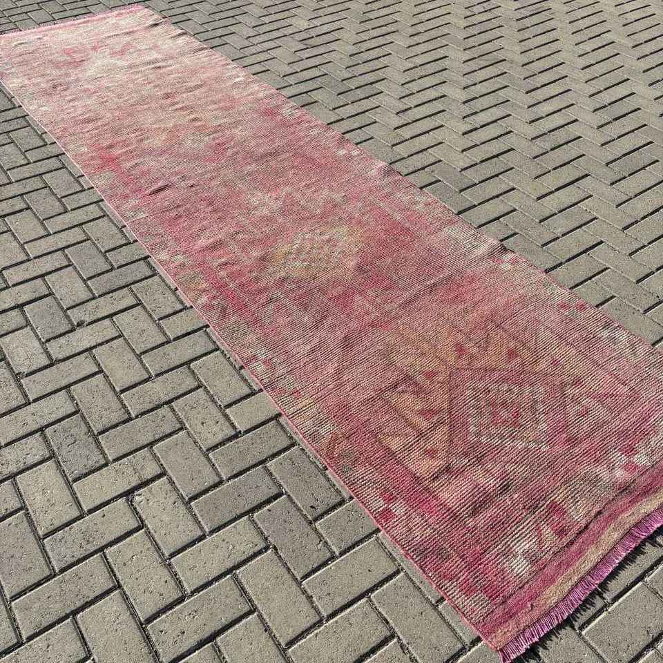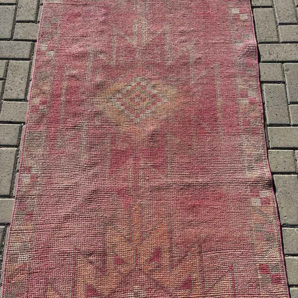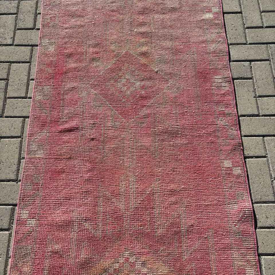 พรมตุรกีวินเทจ, พรมปูพื้นขนาด 3.2x12.3 ฟุต (97x375 ซม.), พรมขนสัตว์สีแดงลายแบบนามธรรม