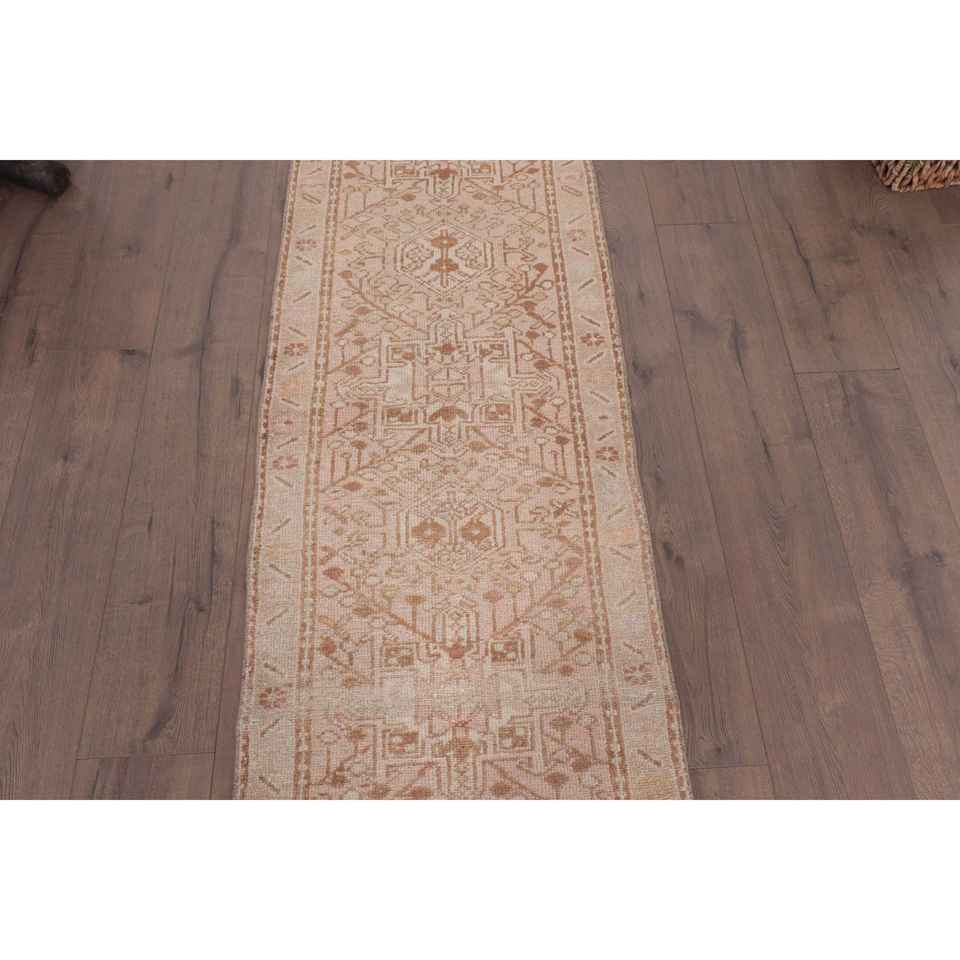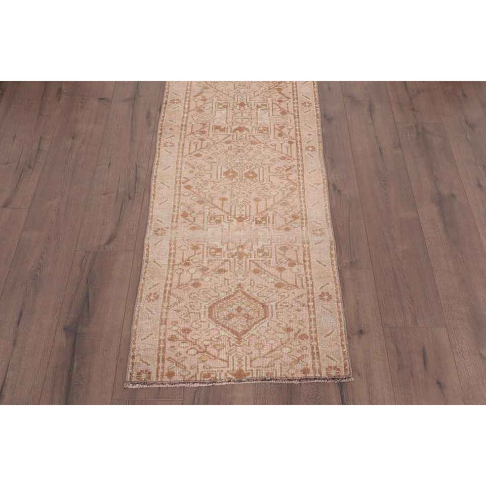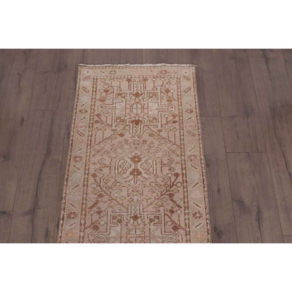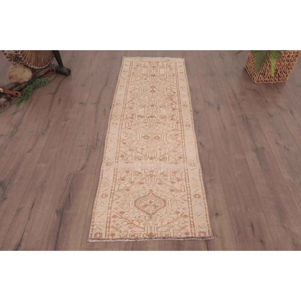 Vintage Turkish Runner Rug 2x6 ft Beige Brown Patchwork Wool Eco-Friendly Latex Backed Rug