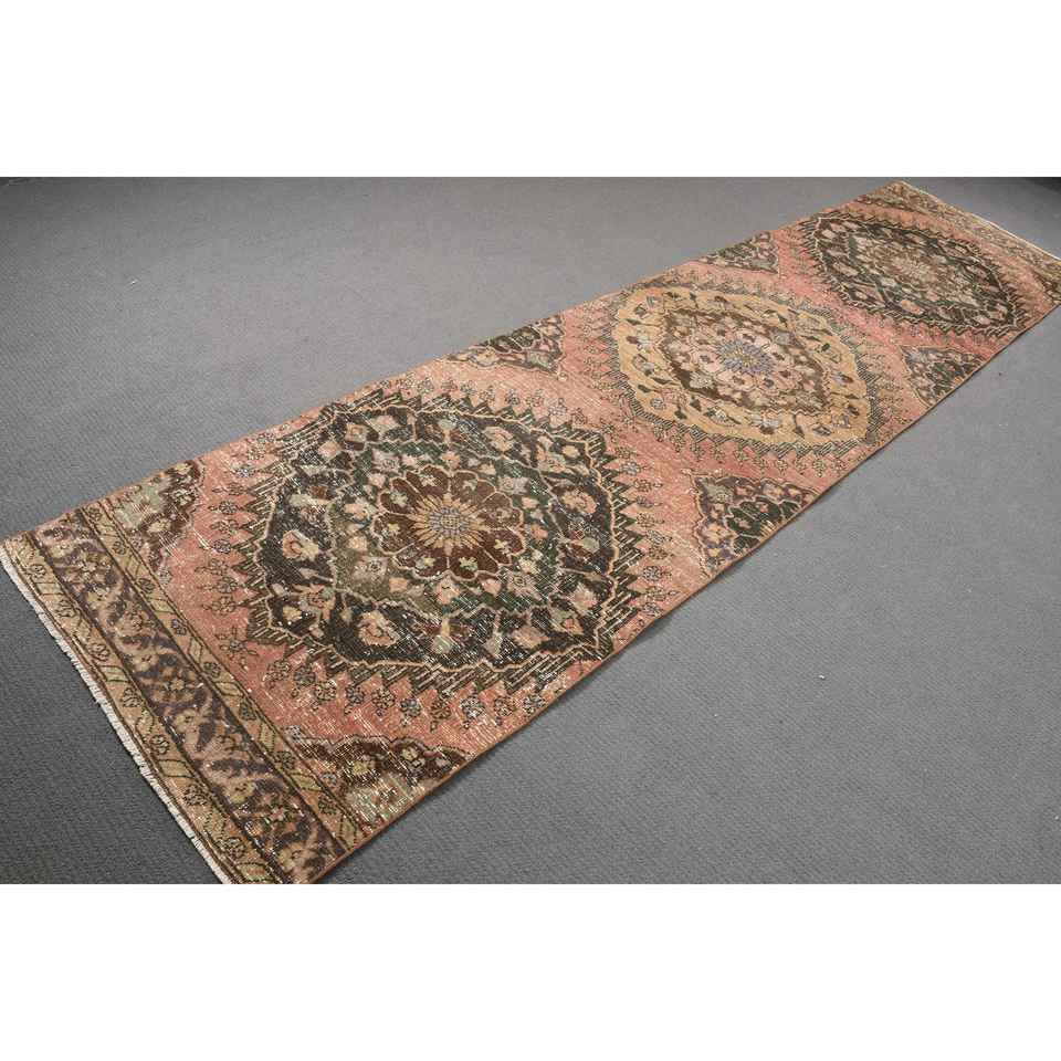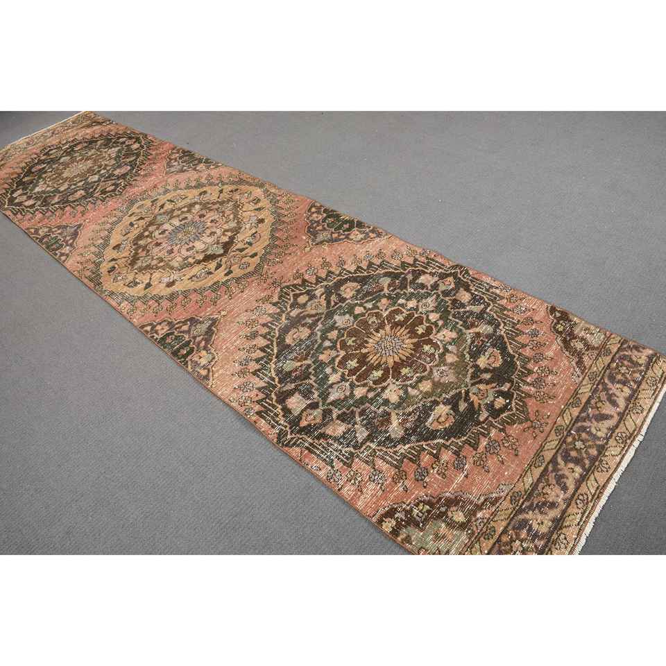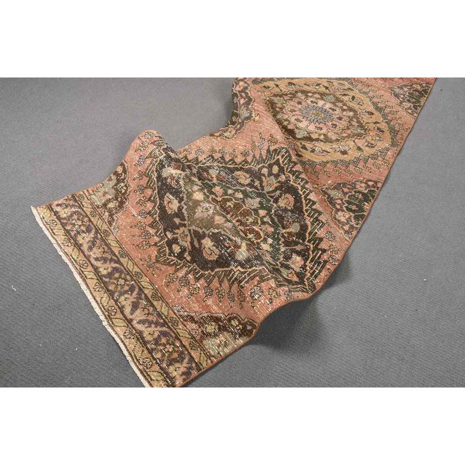 พรมวินเทจสไตล์ตุรกี ขนาด 3x11.9 ฟุต สีน้ำตาลส้มไล่เฉด