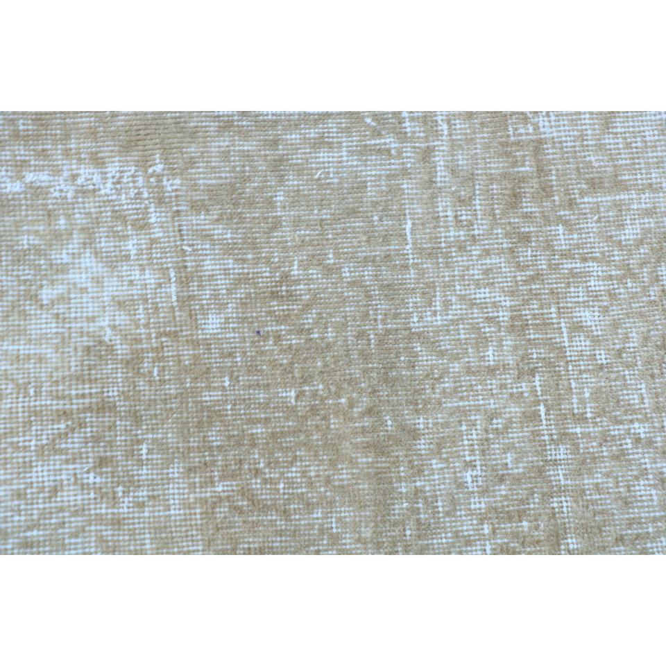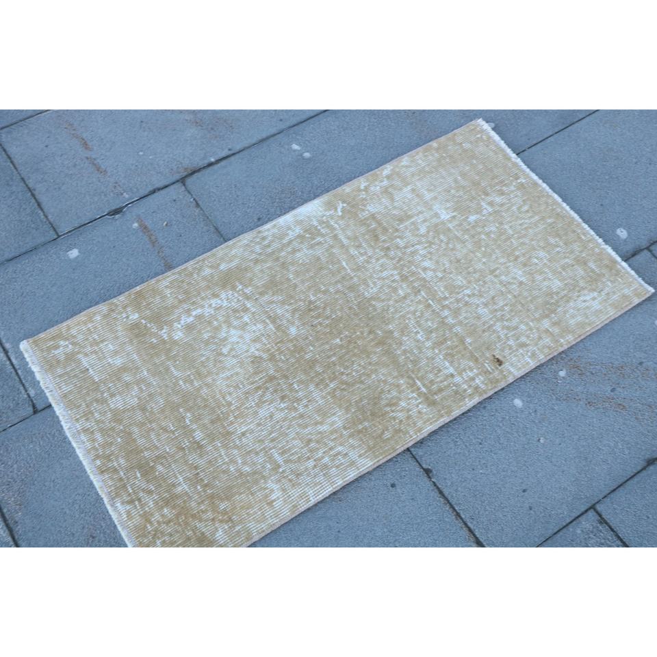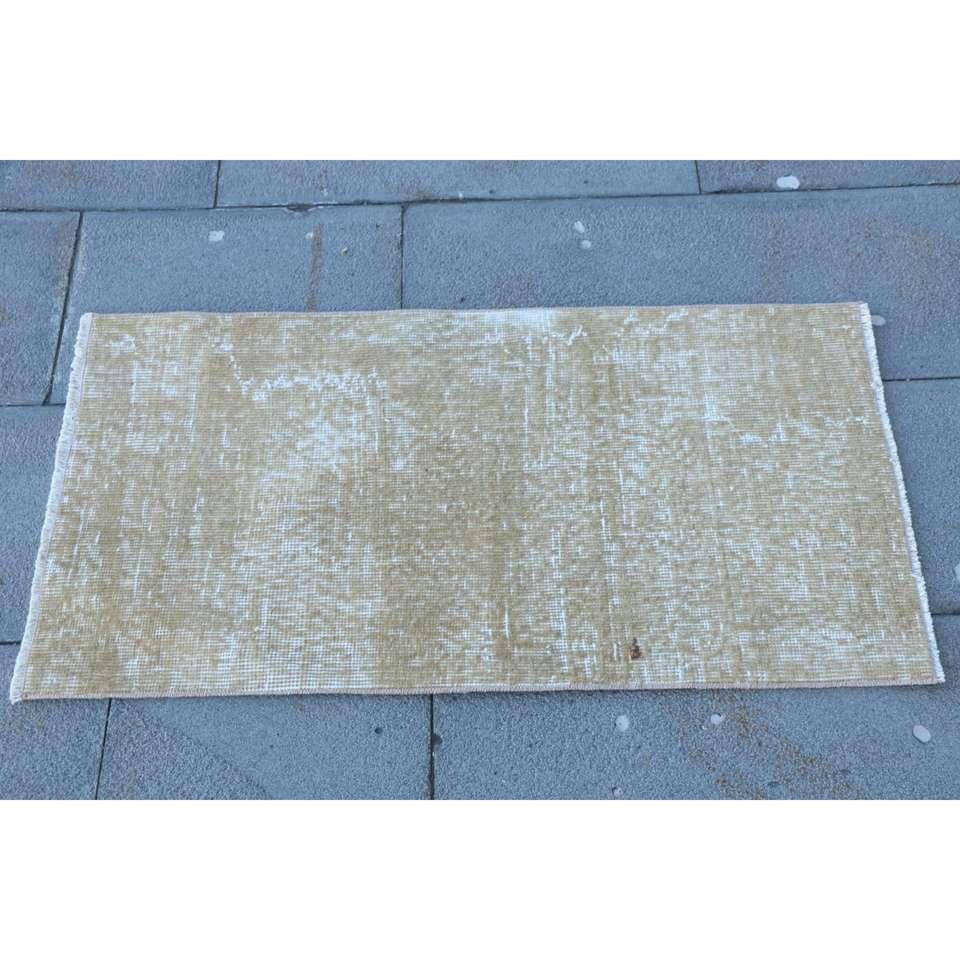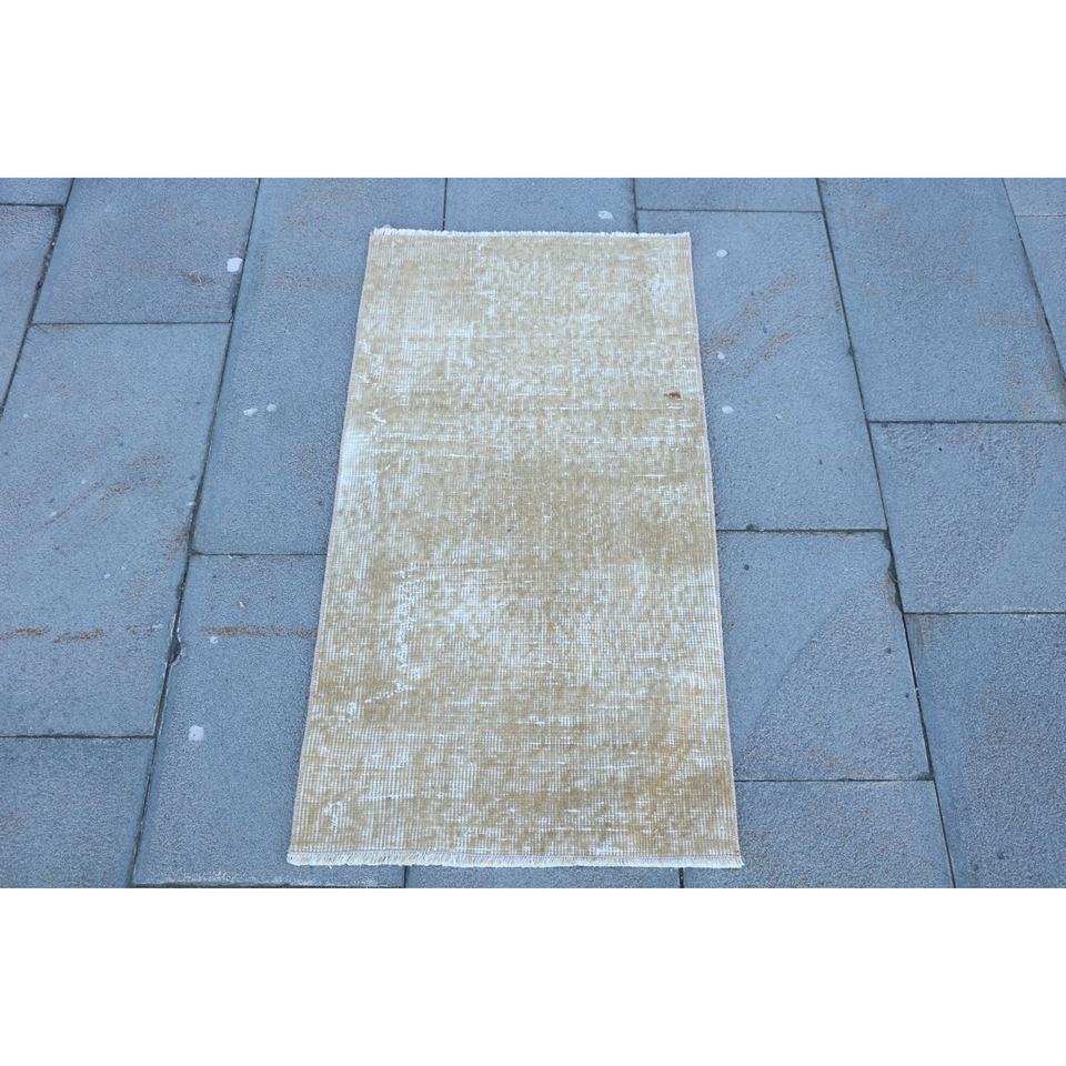 พรมตุรกีโบราณขนาดเล็ก 1.6x3.1 ฟุต สีเบจขาวลายดอกไม้ ทำจากขนสัตว์