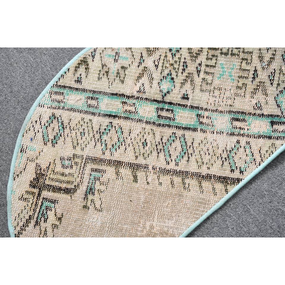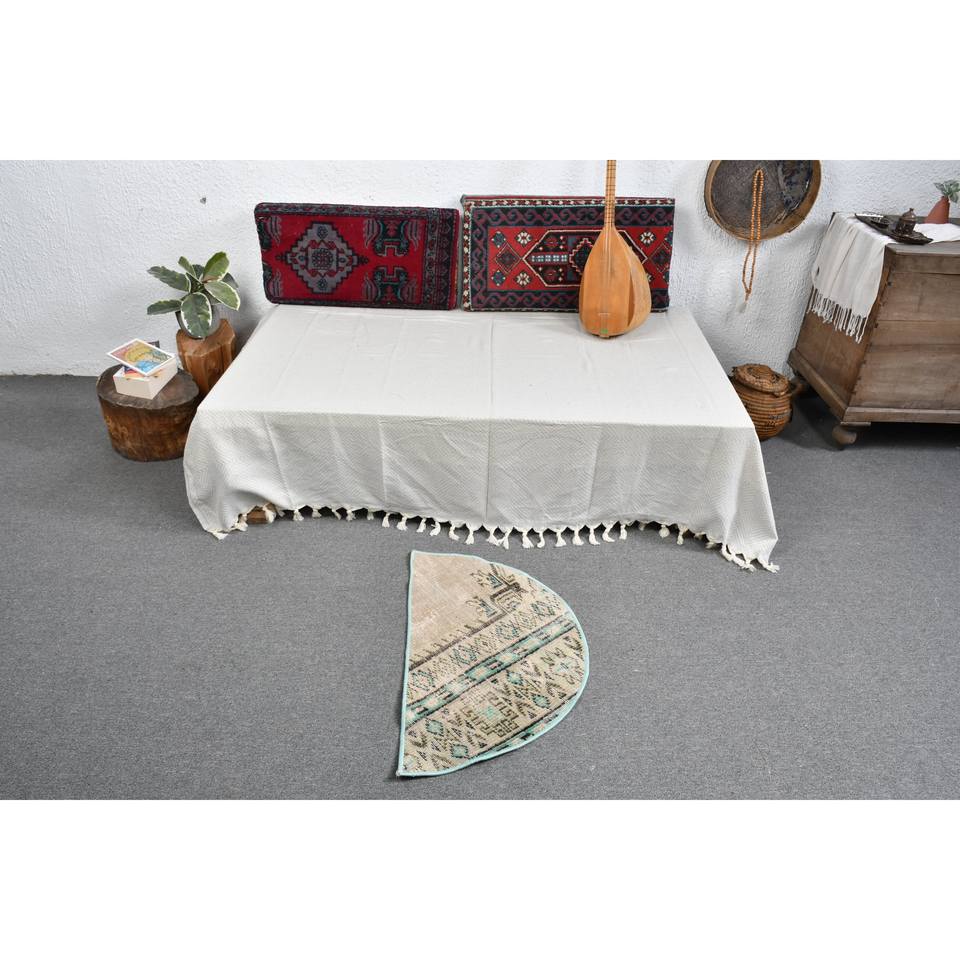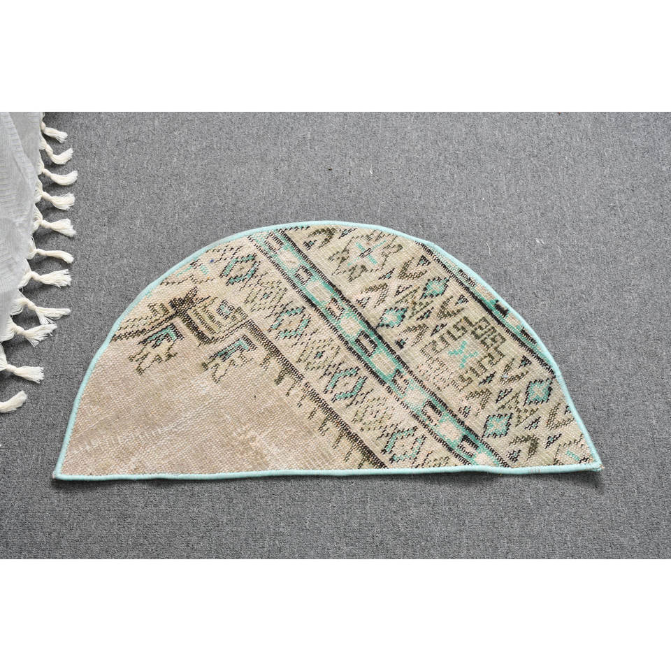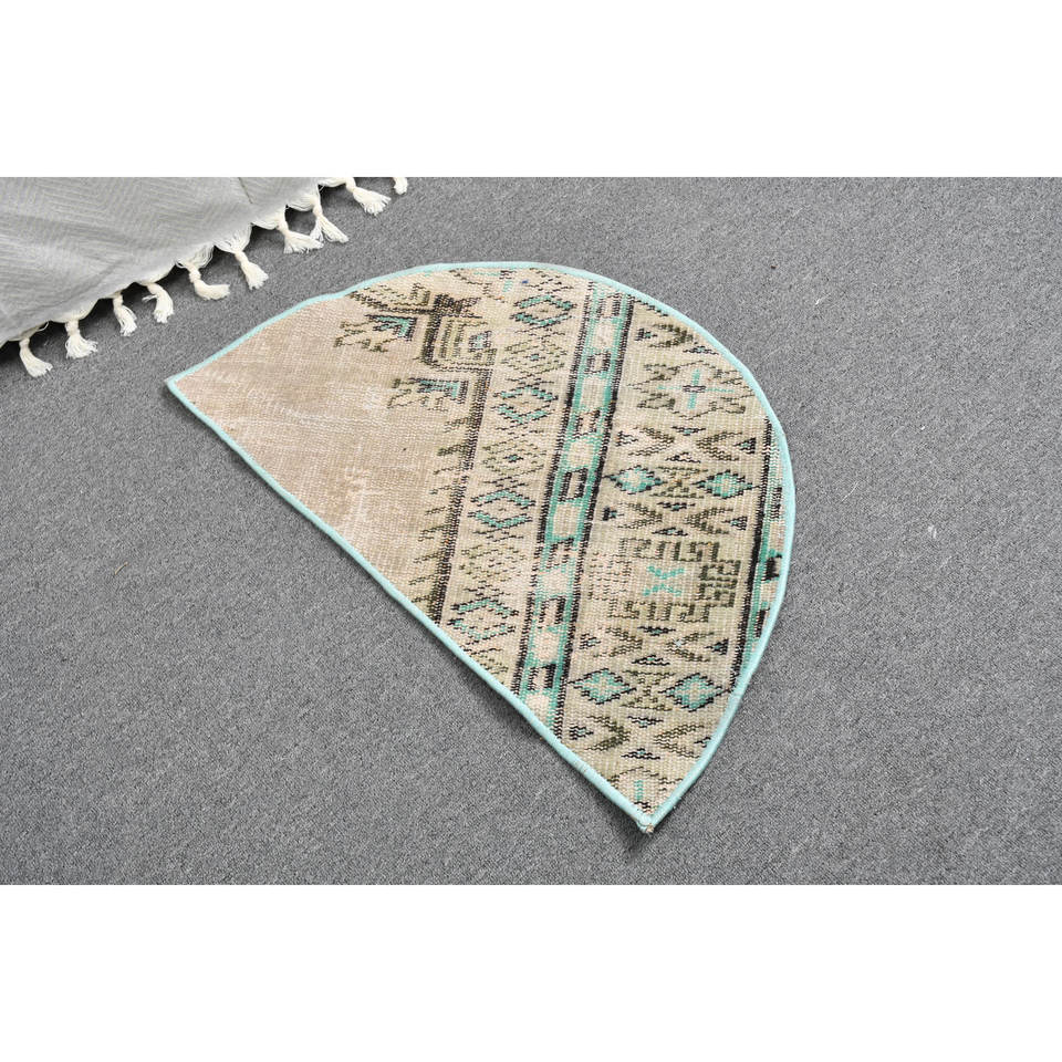 พรมปูพื้นขนแกะสไตล์ตุรกีโบราณขนาด2.5 x 1.5ft ดีไซน์เรียบง่ายสีเบจสีฟ้างานปะต่อทรงสี่เหลี่ยมผืนผ้าใหญ่ขนาด10มม. สำหรับห้องนอน